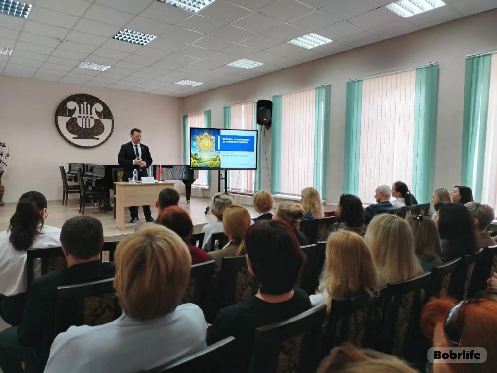 О предпринимаемых мерах по социальной защите пострадавшего населения, реализации и итогах государственных программ по возрождению территорий педагогам и сотрудникам детской школы искусств №1 им. Е.К. Тикоцкого рассказал начальник управления культуры Могилевского облисполкома Александр Жигун.