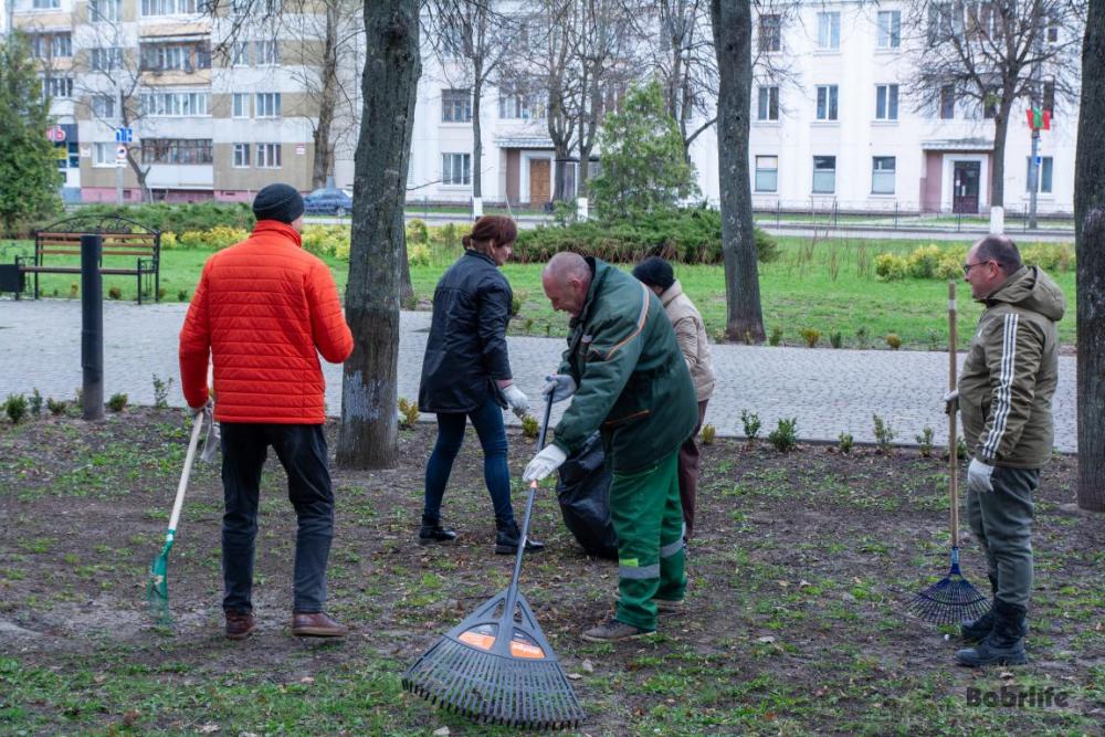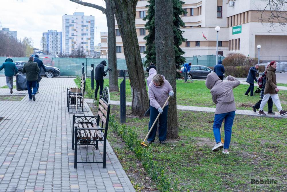 В ходе благой инициативы на уборку вышли работники ОАО «Белагропромбанк» и ЦБУ №703 ОАО «АСБ Беларусбанк». Они привели в порядок прилегающий сквер Дружбы. Порядка 40 членов трудовых коллективов, вооружившись граблями, лопатами и мешками, с азартом принялись за дело. Трудящиеся быстро убрали ветки и мусор, сгребли сухую растительность. Благодаря совместным усилиям территория быстро обрела чистый и ухоженный вид.