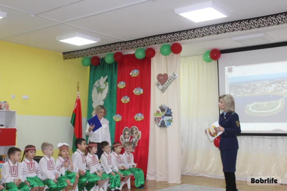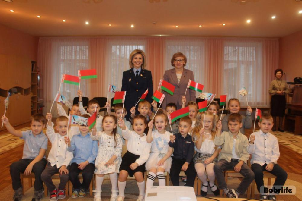 Что такое Родина? Какие символы Беларуси? Что означают красный и зеленый цвета на Государственном флаге? Как называется столица нашей страны? Почему необходимо знать гимн и почему его исполняют стоя? На эти и другие вопросы охотно ответили воспитанники детских садов №№78 и 85, которые сегодня посетили помощник прокурора Бобруйска по особым поручениям Ольга Белогурова и начальник отдела по образованию администрации Первомайского района Лилия Тарасевич.