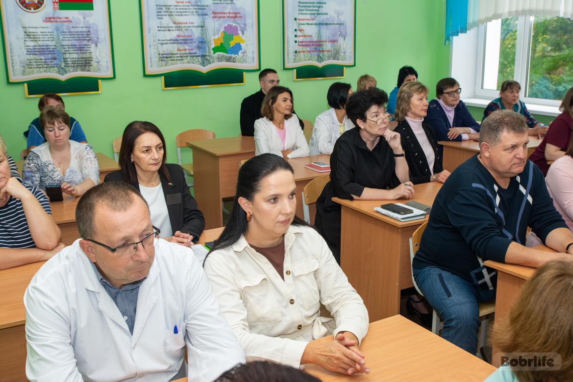 В медколледже Бобруйска прошел Единый день информирования. На встрече с трудовым коллективом присутствовали начальник главного управления по здравоохранению Могилевского облисполкома Владимир Гацко, главный врач Бобруйской центральной больницы Оксана Крупенич, директор учреждения образования Дмитрий Егоров.