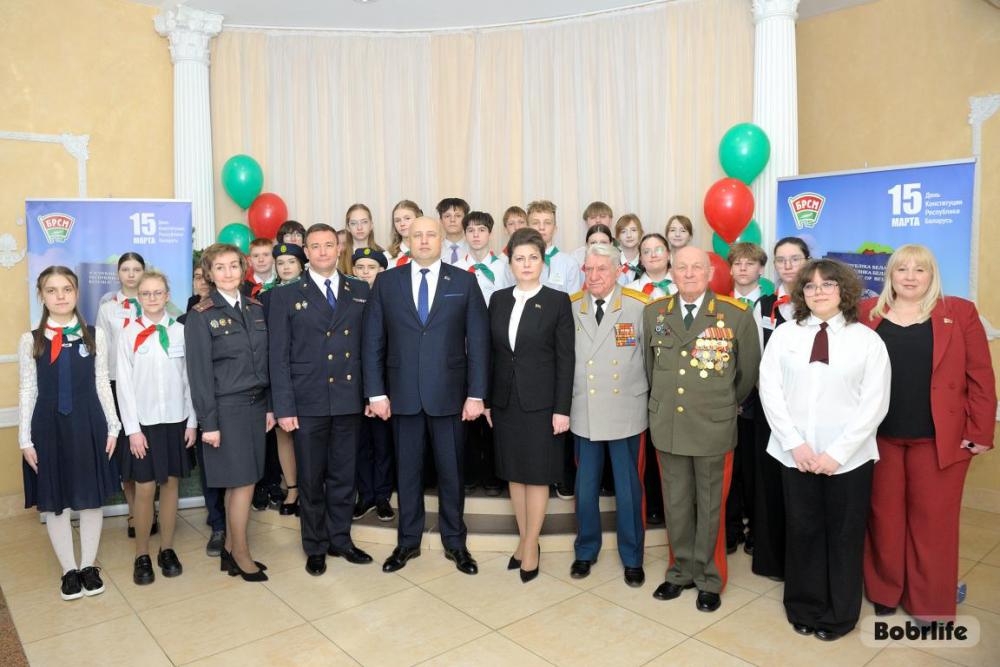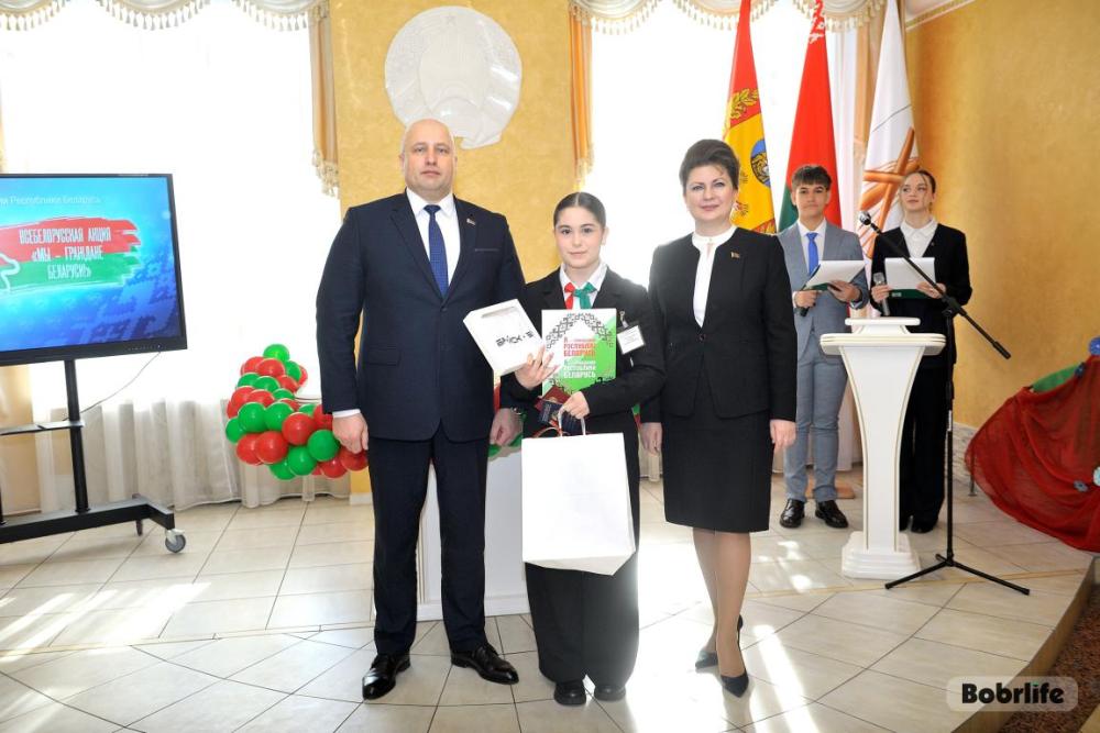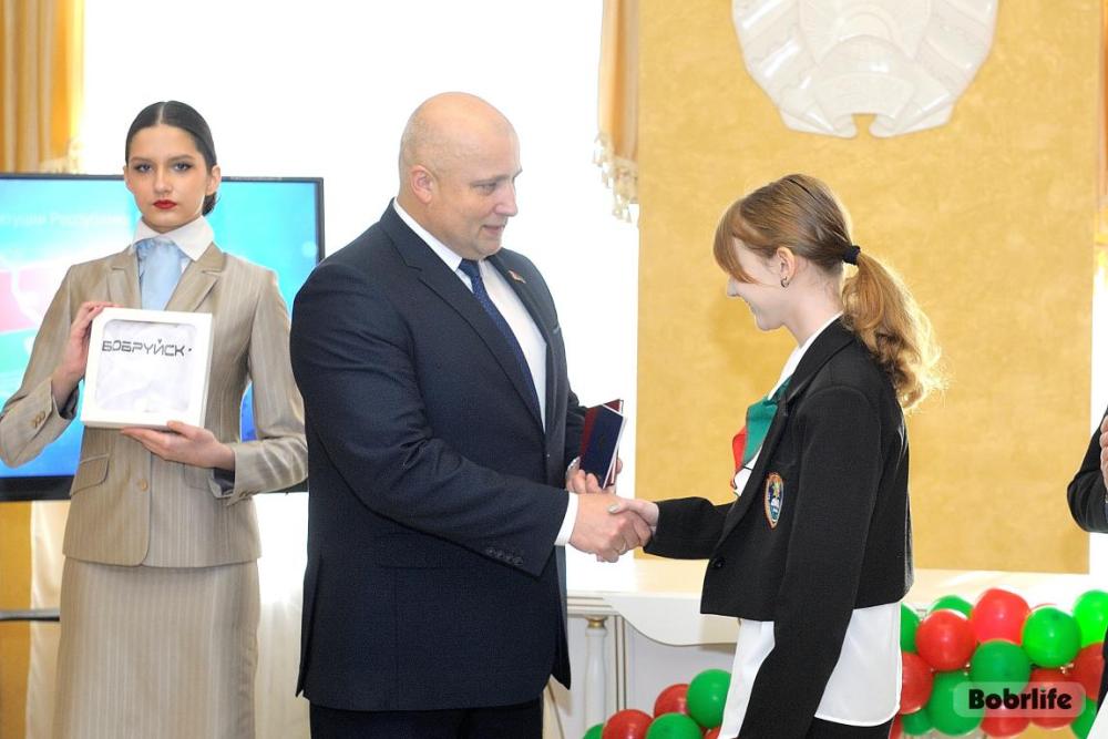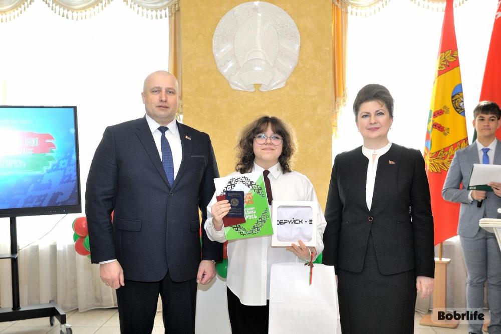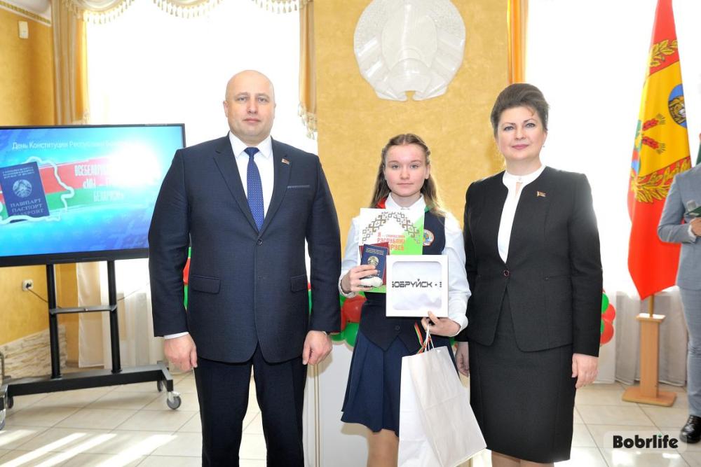 Во Дворце гражданских обрядов состоялась торжественная церемония вручения паспортов бобруйским учащимся. Ребята, их родители и почетные гости стали участниками праздничного городского мероприятия, посвященного Дню Конституции Республики Беларусь. В рамках акции «Мы – граждане Беларуси!» главный документ гражданина удостоились получить 24 учащихся, отличившихся в учебе, спорте, творчестве, общественной деятельности. Поздравить молодежь с важным событием пришли председатель Бобруйского горисполкома Максим Гурин и председатель Бобруйского горсовета депутатов Ирина Рынейская, прокурор Бобруйска Александр Конецкий, начальник отдела по гражданству и миграции УВД Бобруйского горисполкома Елена Гудеева, начальник отдела ЗАГС горисполкома Наталья Панина, генерал-лейтенант в отставке, Почетный гражданин Бобруйска Станислав Румянцев, генерал-майор в отставке Валерий Боровой.