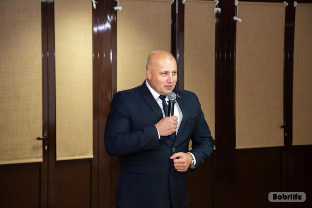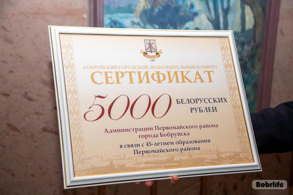 От Бобруйского горисполкома Максим Гурин вручил главе администрации Первомайского района Виталию Власевичу денежный сертификат.