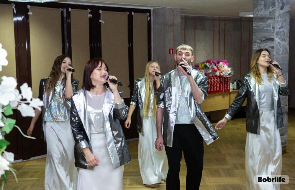 Настроение участникам и торжественность праздничному вечеру придали выступления солистов эстрадных студий «Росы» и «Жемчужинка», цветы и подарки.