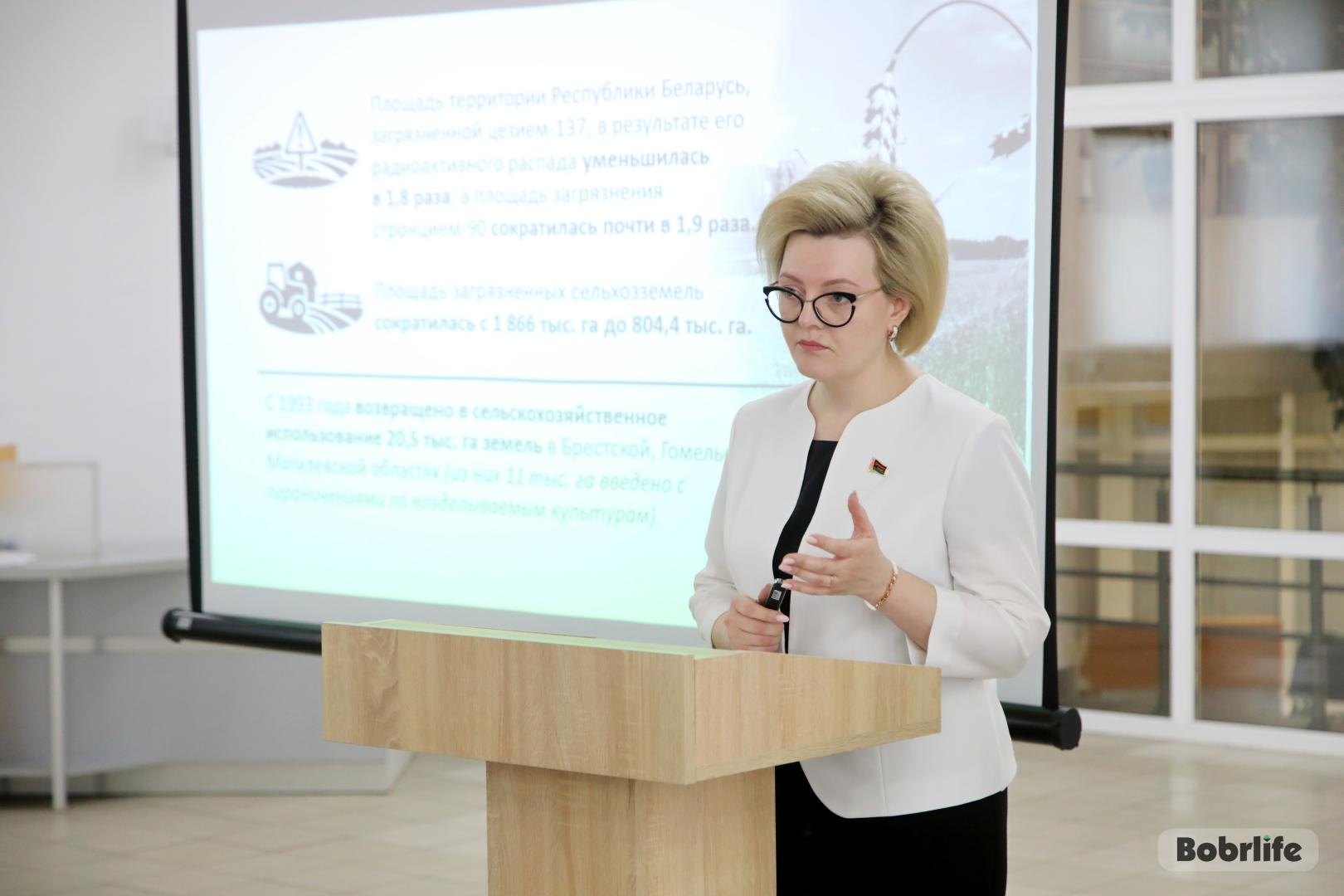 Начальник отдела идеологической работы и по делам молодежи горисполкома Варвара Галеева рассказала, что в Беларуси реализовано шесть государственных программ по преодолению последствий катастрофы на Чернобыльской АЭС и социально-экономическому развитию пострадавших регионов. Возвращаются к полноценной жизни города и деревни на пострадавших территориях (уже 1657 населенных пунктов!). Это реализация инвестиционных программ, строительство жилья, новые рабочие места, удобная инфраструктура… – развитие в интересах жителей этих регионов. На сельскохозяйственных землях снова выращивают чистую высококачественную продукцию. Комплекс защитных мероприятий применяют в лесном фонде. И движение в этом направлении продолжается.