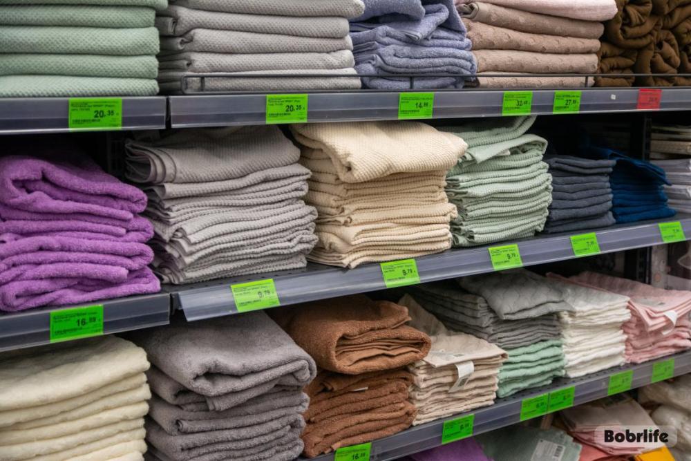 Проверили также наличие товаров первой необходимости, косметических средств в заявленном ассортименте, бытовой химии и продукции текстильной промышленности: кухонные и банные полотенца, пледы и т.д. Отдел с товарами с госсимволикой в прикассовой зоне тоже не вызвал вопросов – в наличии бумажные флаги, значки и сувенирные принадлежности.
