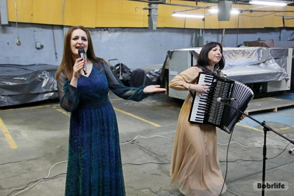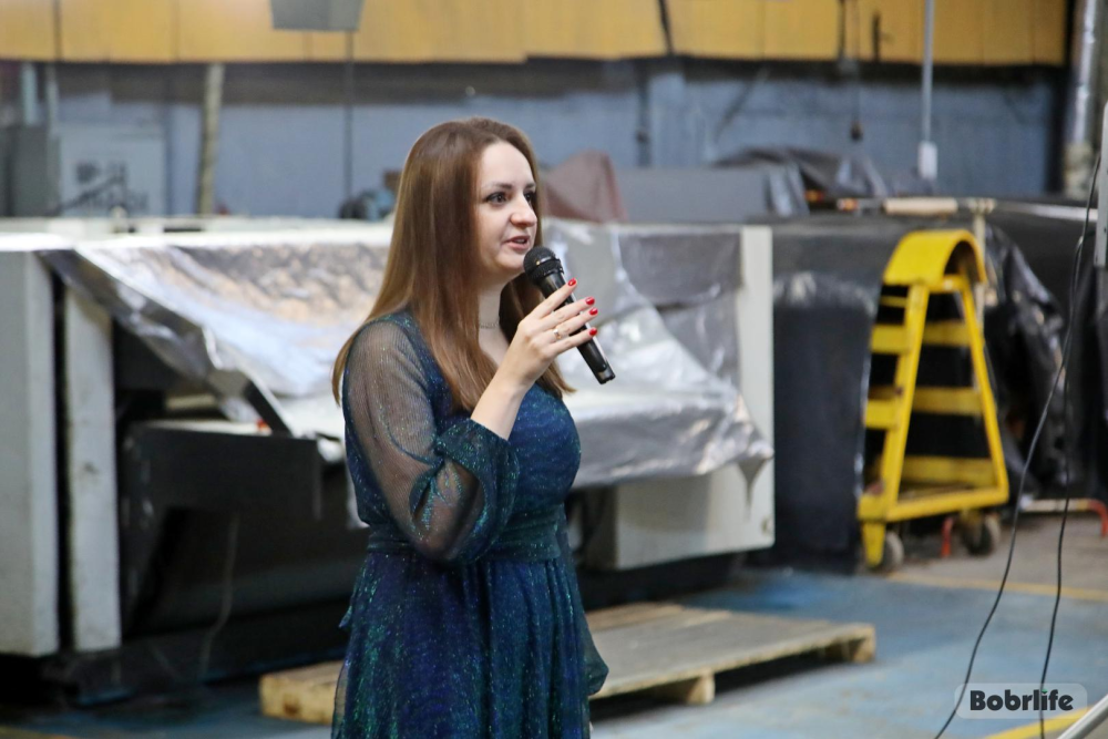Открывая праздничное мероприятие, депутат Бобруйского городского Совета депутатов, преподаватель хоровых дисциплин ДШИ №2 им. В.В. Оловникова Ирина Козлова исполнила для работниц предприятия песню «Счастье» и обратилась к присутствующим женщинам: «Мы не случайно собрались здесь, не в актовом зале, а в цеху. В Год белорусской женщины хочется показать: истинная красота и сила рождаются не на подиумах и в красивых залах, а там, где есть характер, мастерство и душа – на ваших рабочих местах. Сегодня мы хотим зарядить вас радостью от встречи с музыкой и прекрасным праздничным настроением».