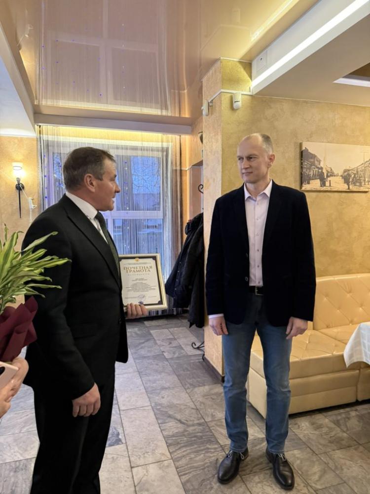 Председатель Могилевской областной организации Белорусского профсоюза работников культуры, информации, спорта и туризма Андрей Заблоцкий вручил Почётную грамоту главному врачу санатория имени В.И. Ленина в Бобруйске Андрею Микановичу. Награда стала признанием его многолетнего добросовестного труда, значительного вклада в развитие санаторно-курортной сферы и активной социальной позиции.