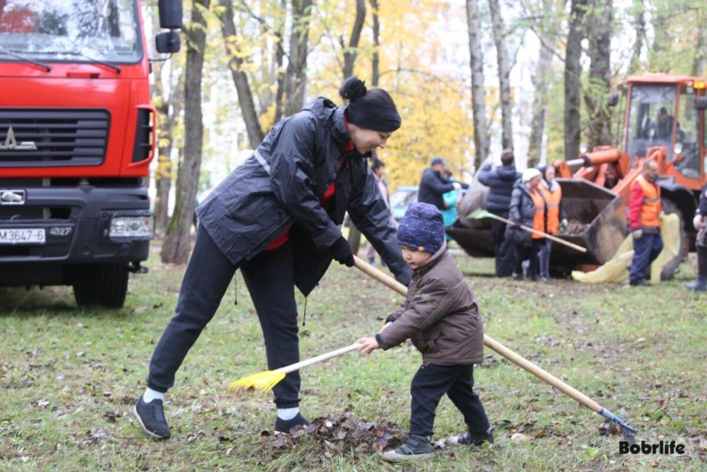 Также к ним присоединились и неравнодушные горожане. Так, бобруйчанка Виктория Осипович пришла на субботник вместе с 4-летним сыном Олежкой, который с большим интересом и усердием трудился наравне со взрослыми.