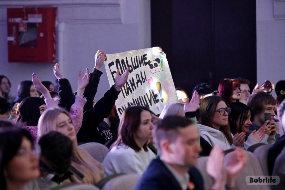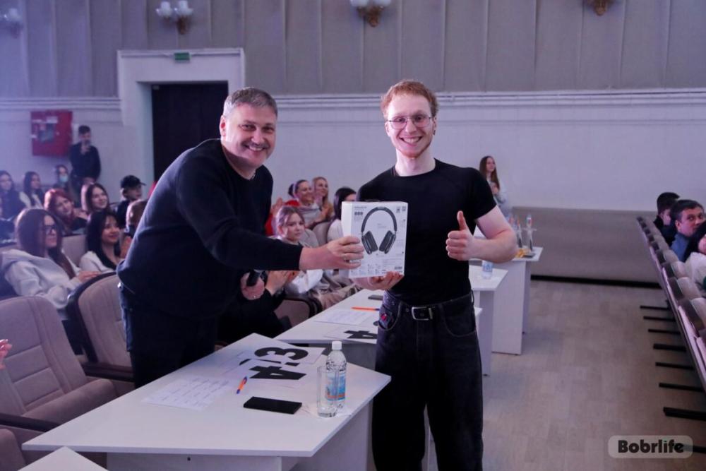 Самый трогательный момент мероприятия – директор информагентства «Бобруйск Медиа» Мария Бересневич вручила «БОЛЬШИМ ПАНДАМ» специальный приз для одного из участников команды, который ответственно готовился выйти на сцену вместе со всеми, но за несколько дней до финальной игры попал в больницу.