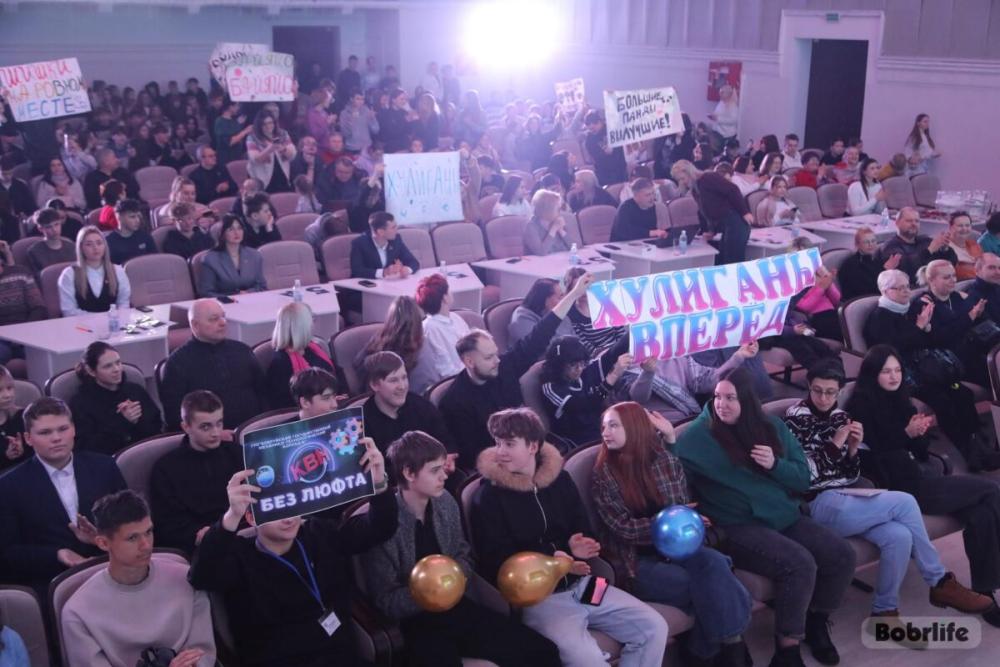 Поклонников и ценителей юмора в зале Центра творчества детей и молодежи собрала финальная игра молодежной лиги КВН Бобруйска. На сцене зажигали и шутили четыре команды – «БОЛЬШИЕ ПАНДЫ» (средняя школа №21), «Без Люфта» (механико-технологический колледж), «Хулиганы» (аграрно-экономический колледж), «Шишки на ровном месте» (лесотехнический колледж). А в зрительном зале, как поется в КВНовской песне, пустых мест действительно не было, даже пришлось заносить дополнительные скамейки для желающих увидеть игру веселых и находчивых бобруйчан.
