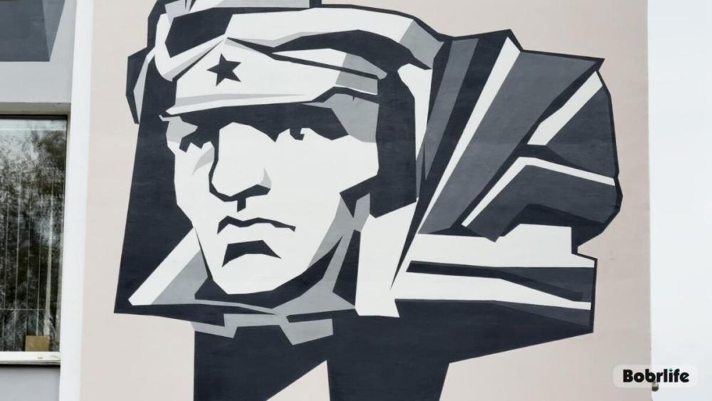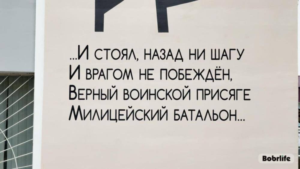 В Бобруйске, как и во всей Беларуси, бережно хранят память о подвиге защитников родной земли. 18 июля 1941 года Константин Григорьевич Владимиров, чье изображение нанесено на фасад, был убит разрывом вражеского снаряда сразу после того, как, будучи раненым в голову и ногу, поднял подчиненных в последнюю контратаку. Именем Константина Григорьевича Владимирова названа одна из улиц Могилева.
