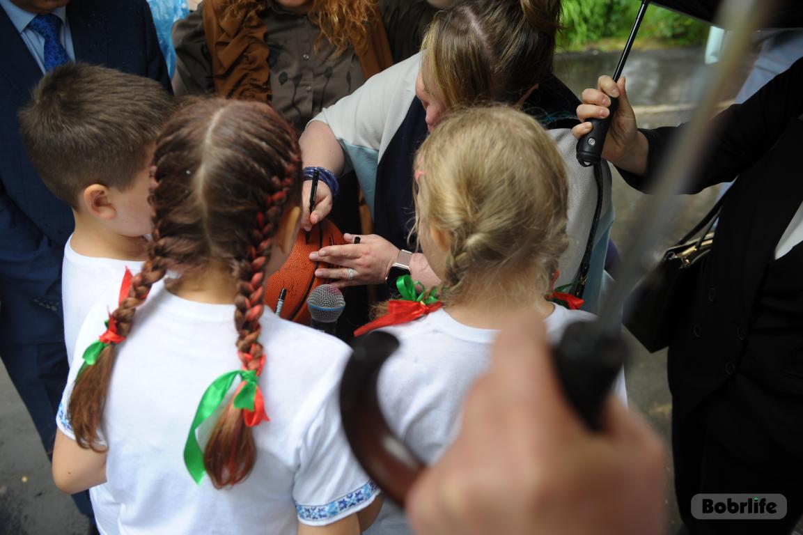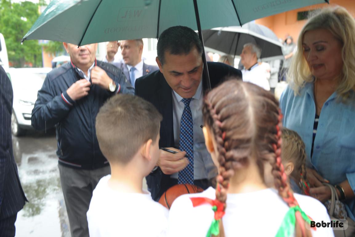 Руководство Бобруйска и гости города по просьбе ребят оставили автографы на мяче и сделали селфи на память.