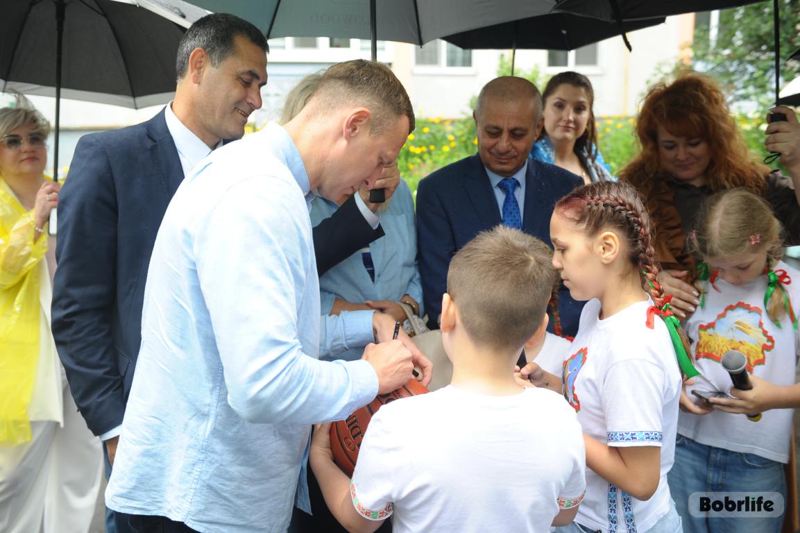 Олег Зяблов, представитель делегации из города-побратима Владимира, с пожеланиями добра, мира и счастья преподнес юным бобруйчанам спортивный подарок – баскетбольные, волейбольные и футбольные мячи.
