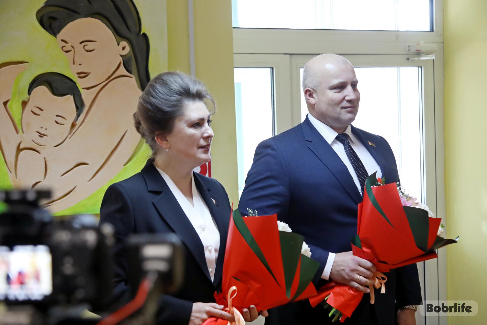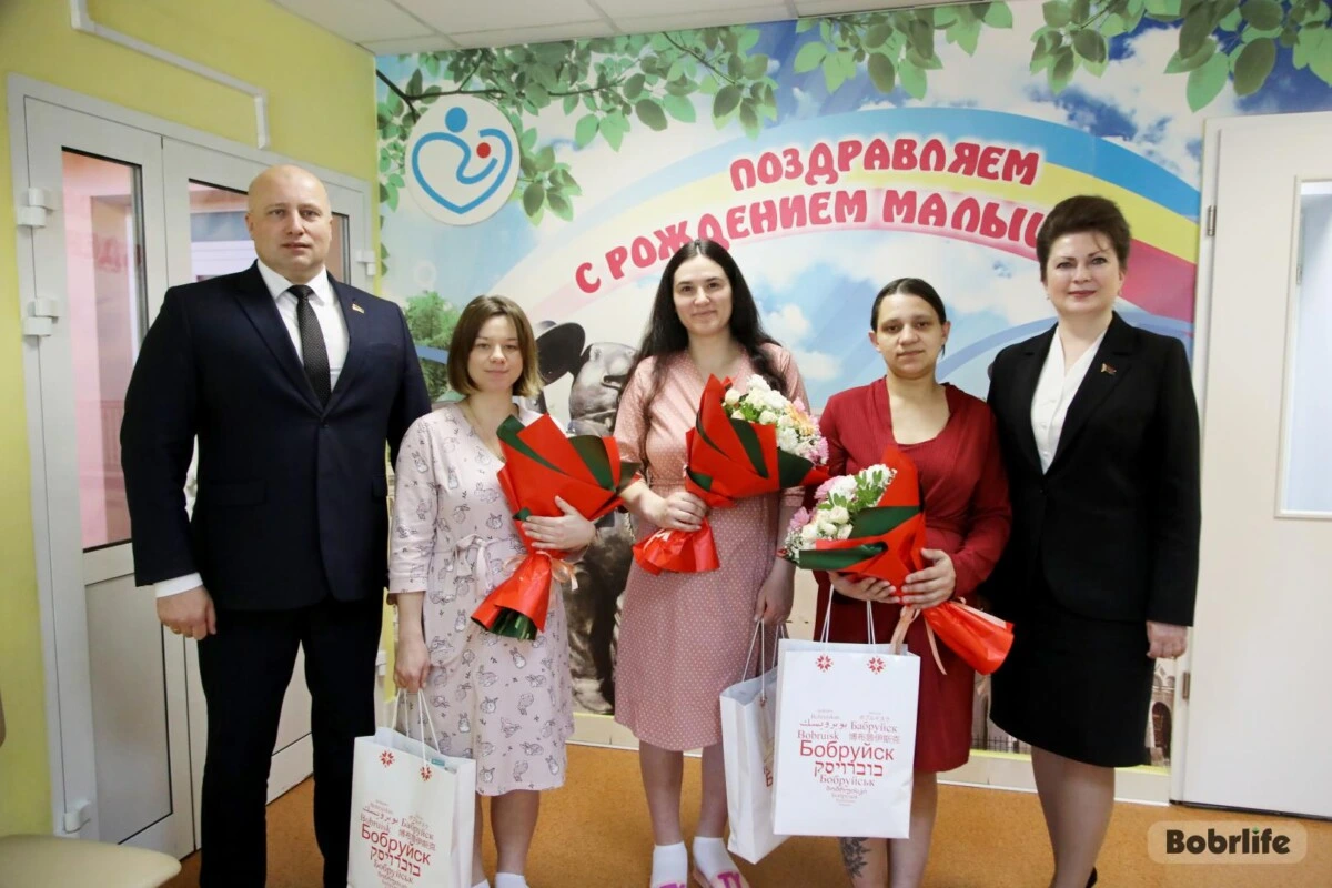 Женщин пришли поздравить с важным событием в жизни семей председатель Бобруйского горисполкома Максим Гурин и председатель Бобруйского горсовета депутатов Ирина Рынейская. С теплыми словами вручили молодым мамам цветы и подарки для новорожденных.