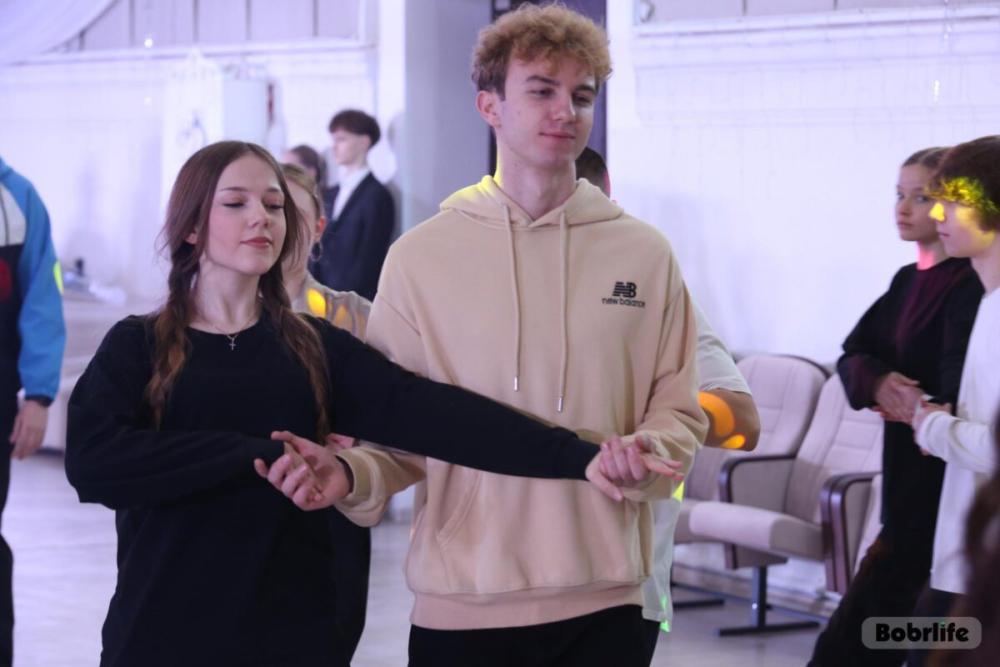 В зале Центра дополнительного образования детей и молодежи Бобруйска особенно оживленно: одна мелодия сменяет другую, пары выстраиваются в линии и шаг за шагом отрабатывают будущую бальную программу. До городского новогоднего бала для учащихся, добившихся высоких результатов в учебе, творчестве и спорте, остается меньше недели. Торжество пройдет уже во вторник, 23 декабря, а пока репетиции идут практически ежедневно.