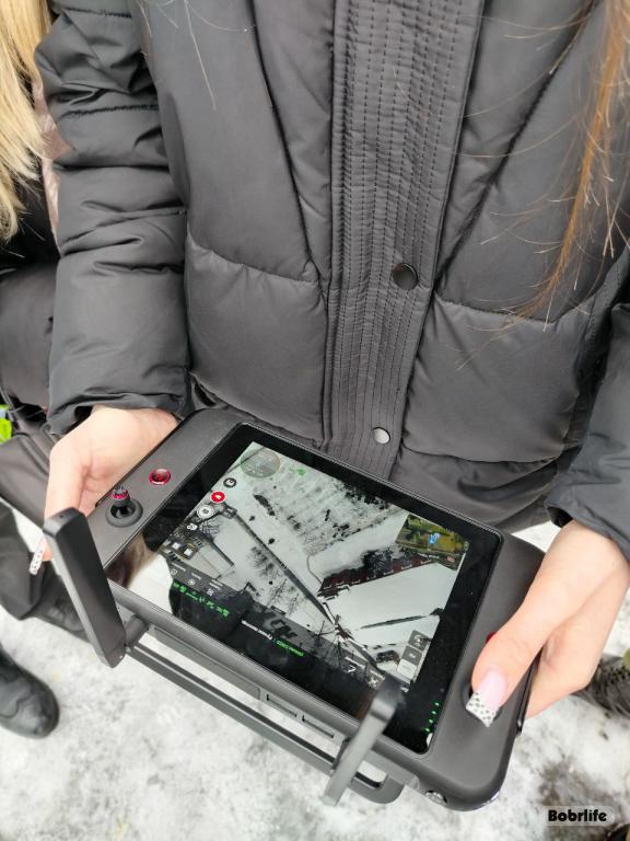 От мощной наземной техники внимание участников переместилось в небо, где осуществлялся демонстрационный запуск дрона. БПЛА состоит на вооружении Бобруйской военной комендатуры с целью осуществления обеспечения выполнения задач по предназначению. Учащимся продемонстрировали порядок применения при выполнении мероприятий по розыску и задержанию военнослужащих. Преимущество дрона заключается в том, что с его помощью можно вести поисковые мероприятия как в дневное, так и в ночное время без влияния особенностей ландшафта и проходимости местности. Оборудование позволяет эффективно работать в том числе и в плотной городской застройке.