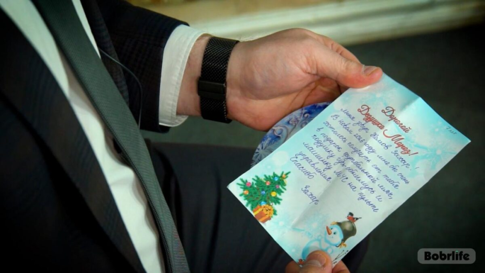 На новогодней елке в студии разместились шарики-открытки с пожеланиями маленьких бобруйчан. Дмитрий Максименко снял с зеленой веточки письмо Захара Кемова, который попросил у Деда Мороза футбольный мяч, подушку «гусь-обнимусь» и машинку МЧС на пульте управления. Исполнение детского желания уже в пути.