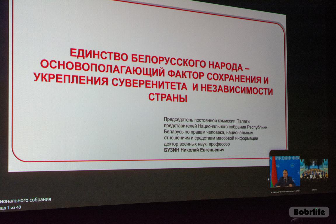 В рамках празднования Дня народного единства с учащимися школ и колледжей Бобруйска прошла диалоговая площадка «Единство белорусского народа – основополагающий фактор укрепления суверенитета и независимости страны». Спикером выступил председатель Постоянной комиссии Палаты представителей Национального собрания Беларуси по правам человека, национальным отношениям и средствам массовой информации Николай Бузин. В мероприятии принял участие заместитель председателя Бобруйского горисполкома Владимир Книга.