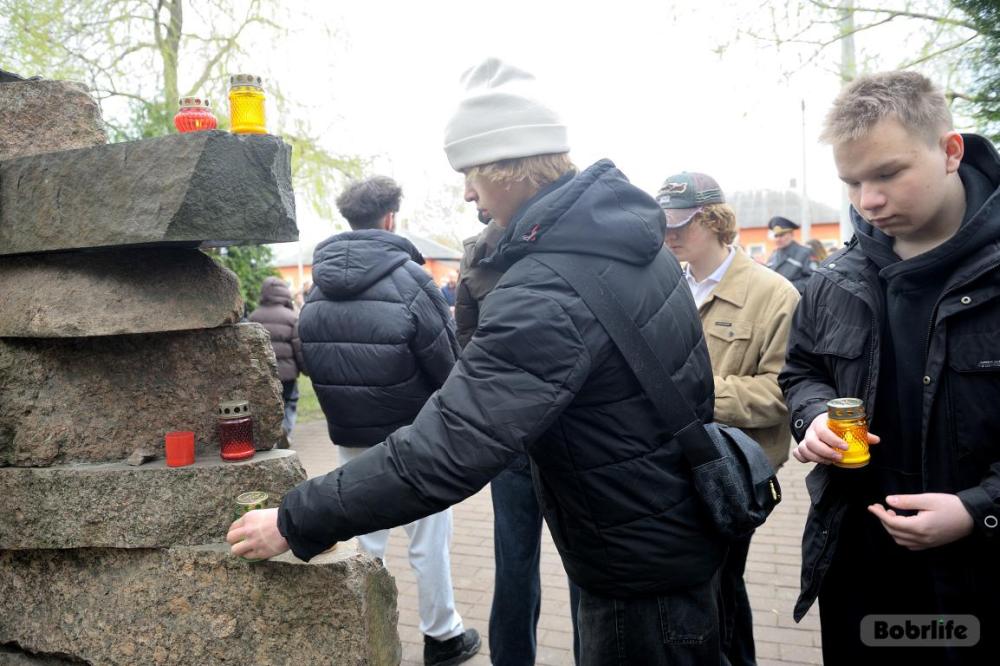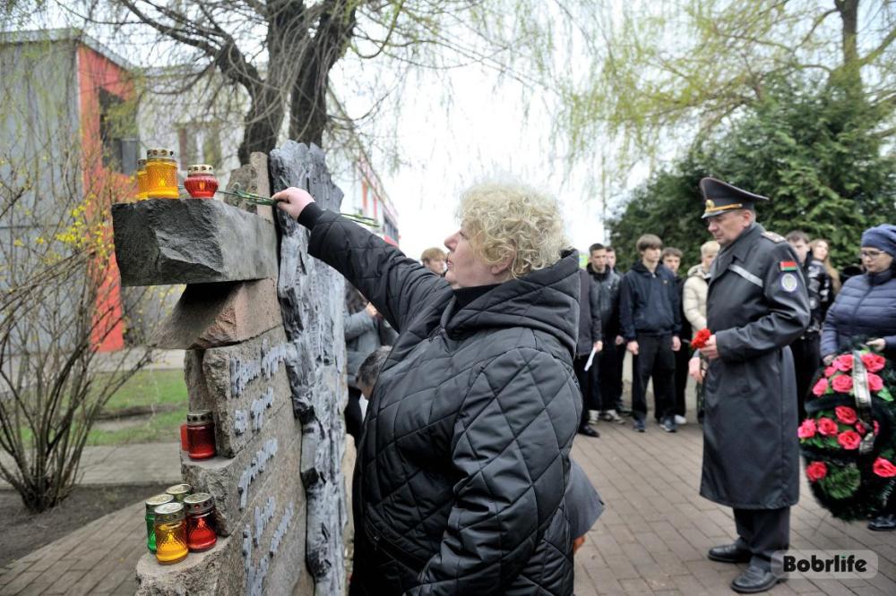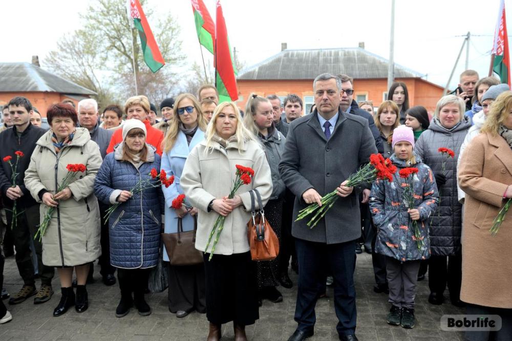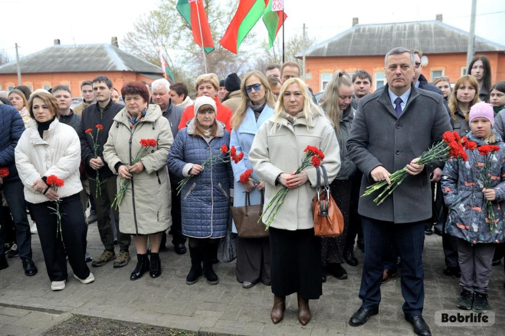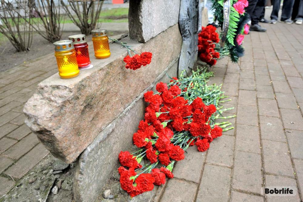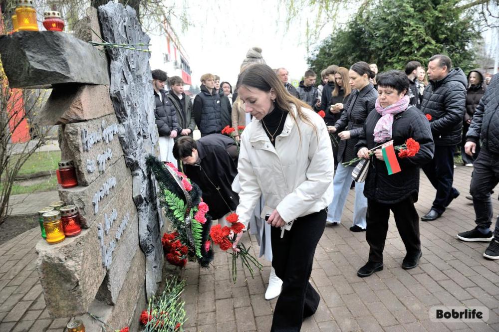 События Великой Отечественной войны стали страшной страницей истории нашего города. Каратели организовали на территории Бобруйской крепости лагерь смерти № 131, устроили в городе гетто, куда согнали все еврейское население Бобруйска, впоследствии зверски уничтоженное в 1941 году возле деревень Каменка и Еловики. В знак глубокой скорби и вечной памяти о безвинно погибших людях, в Международный день освобождения узников фашистских концлагерей неравнодушная молодежь и трудовые коллективы предприятий и организаций нашего города возложили цветы к мемориальному знаку «Узникам Бобруйского гетто». Разделили скорбь с горожанами глава администрации Первомайского района Виталий Власевич, заведующий сектором идеологической работы и по делам молодежи администрации Первомайского района Марта Чичерина, первый секретарь Первомайского РК ОО «БРСМ» Елена Евладова.