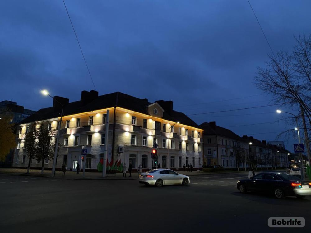 Вечером 24 октября на главной улице города на Березине — Минской — включили архитектурную подсветку жилого дома №18. Это третий дом на главной городской улице, который засиял огнями. На фасаде установлены современные световые элементы: 30 светодиодных светильников в два ряда по 22 Вт белорусского производства, а также желтая неоновая лента вдоль крыши. Подсветка включается одновременно с уличным освещением города.
