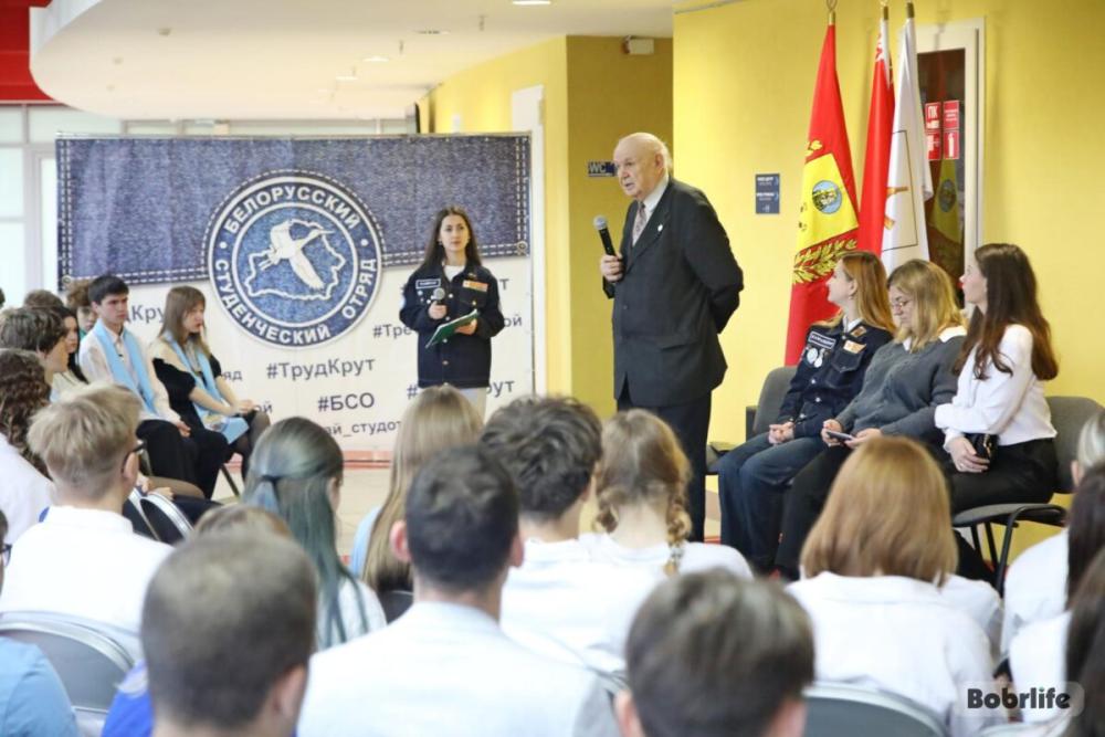 Один из почетных гостей – ветеран комсомольского движения Владимир Вяткин – рассказал молодежи, как это было в 1962 году, когда сам на летних каникулах впервые оказался на комсомольской стройке Полоцкого нефтеперерабатывающего завода: «Жили в палатках рядом со строительной площадкой. Выдали нам форму – робу, сапоги, инструменты. Запомнилось то время отношением к работе, работали мы очень хорошо. А помимо этого, стояла задача не только строить, но и проводить концерты, спортивные мероприятия, встречи с ветеранами войны. После наш ректорат и мы получили благодарность и высокую оценку. Юность закаляется в труде: позже были целина, БАМ, Бобруйский шинный комбинат и многие другие комсомольские стройки. Те годы остались в памяти. Иногда мы встречаемся и спрашиваем: «Как жизнь?» – «Жизнь хороша!» Хочу сказать, что сегодня очень высока роль молодежи. Наш Президент многое делает, чтобы воспитывать молодое поколение в нужном направлении».