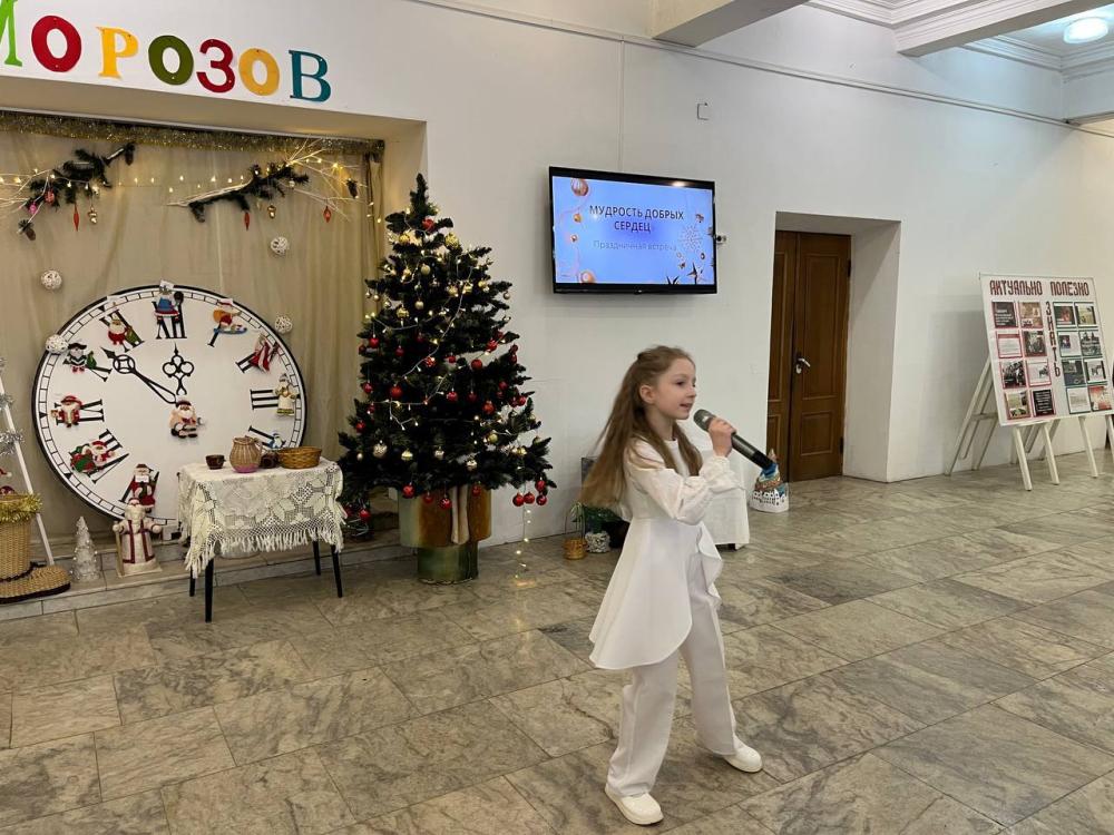 Студия декоративно-прикладного творчества «Майстрыха.by» под руководством Качан Гульнары Кенеспаевны подготовила яркую новогоднюю выставку «По следам Дедов Морозов». Также участники студии показали творческий номер «Колядки», добавив праздничной атмосферы. Директор Центра Засемкова Наталья Владимировна поблагодарила юных участников и вручила им благодарности со сладкими подарками.