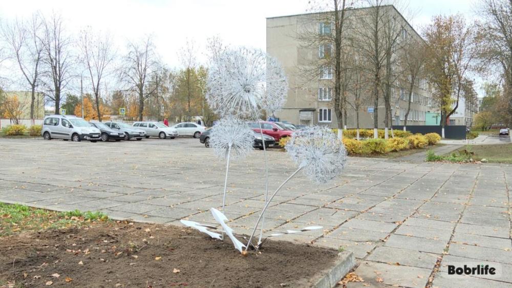 — Эти одуванчики были установлены в рамках конкурсного проекта, посвященного Году благоустройства, и выполнены из вязальной проволоки разного диаметра, — делится Татьяна Жарова, мастер производственного обучения УО «Бобруйский государственный механико‑технологический колледж».
