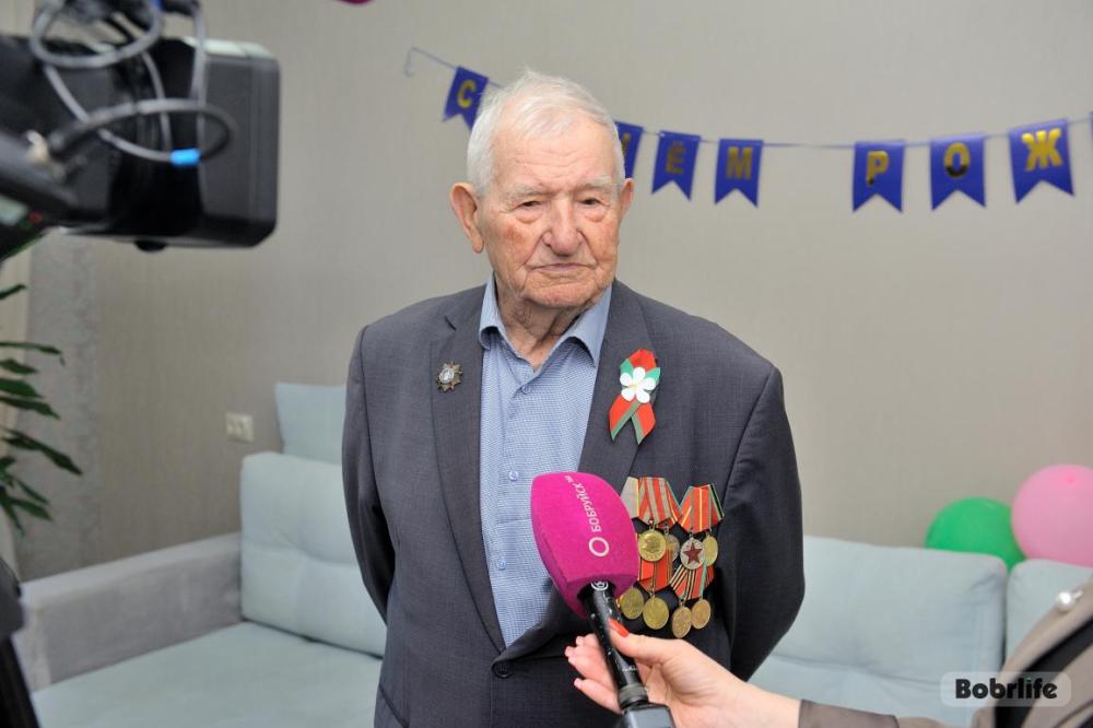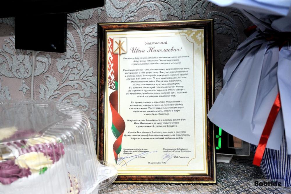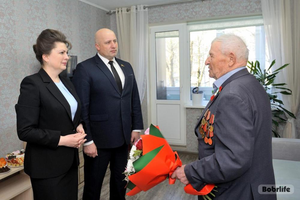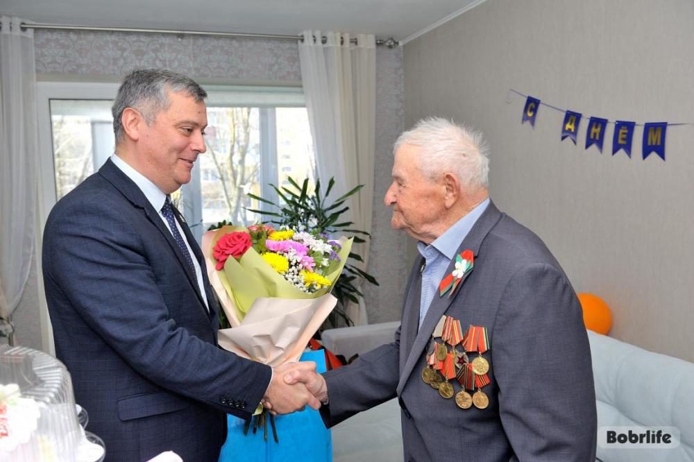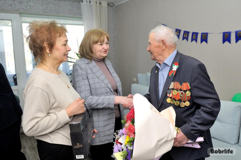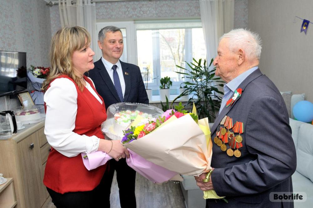 Солнечный мартовский день радует не только хорошей погодой, но и замечательным праздником: ветеран Иван Зимин отпраздновал 100-й день рождения. Поздравить юбиляра прибыли председатель Бобруйского горисполкома Максим Гурин и председатель Бобруйского городского Совета депутатов Ирина Рынейская. Для именинника – подарки, цветы, самые светлые пожелания и, конечно же, большой и вкусный торт.