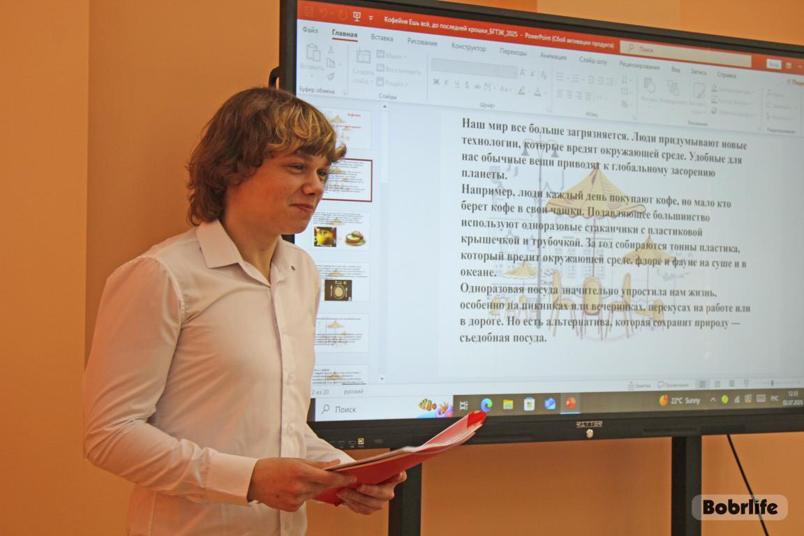 Наверняка каждый посетитель центра города заметил, что с каждым годом число кофеен в Бобруйске растет. Кофейные реки оборачиваются морем одноразовых стаканчиков в урнах. Выход есть – съедобные стаканчики. Бизнес-проект учащегося торгового-экономического колледжа уже готов. Съедобные стаканчики разработаны – жюри были представлены опытные образцы. Эти стаканчики не протекают и дополняют вкус бодрящего напитка. Даже если вы не хотите их есть, не беда – органический продукт полностью биоразлагаем.