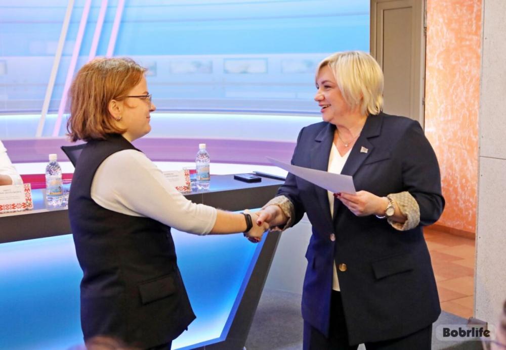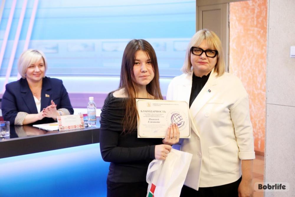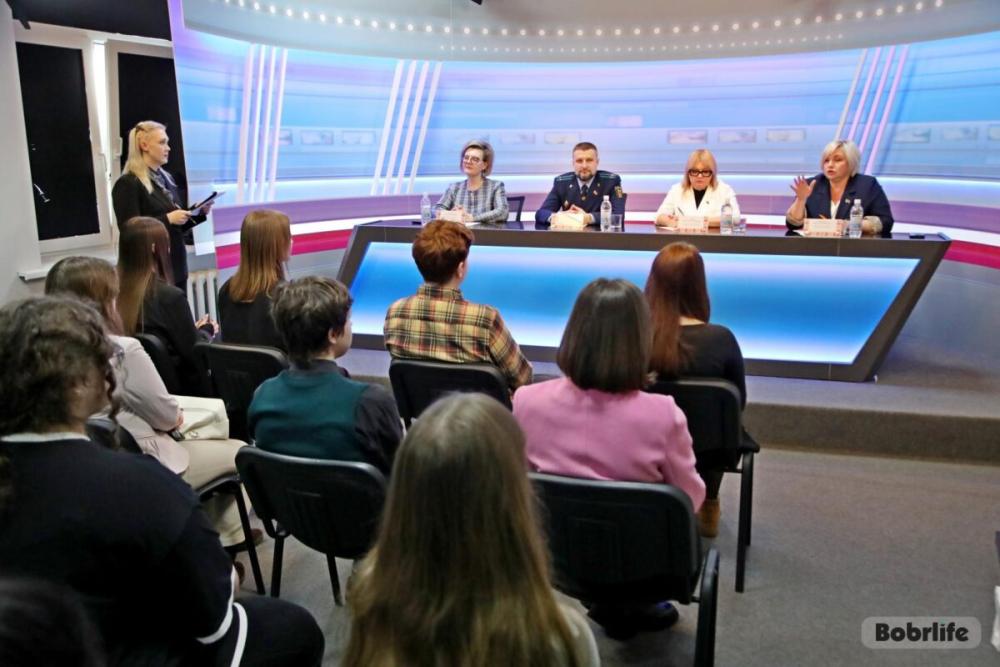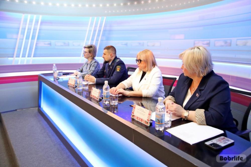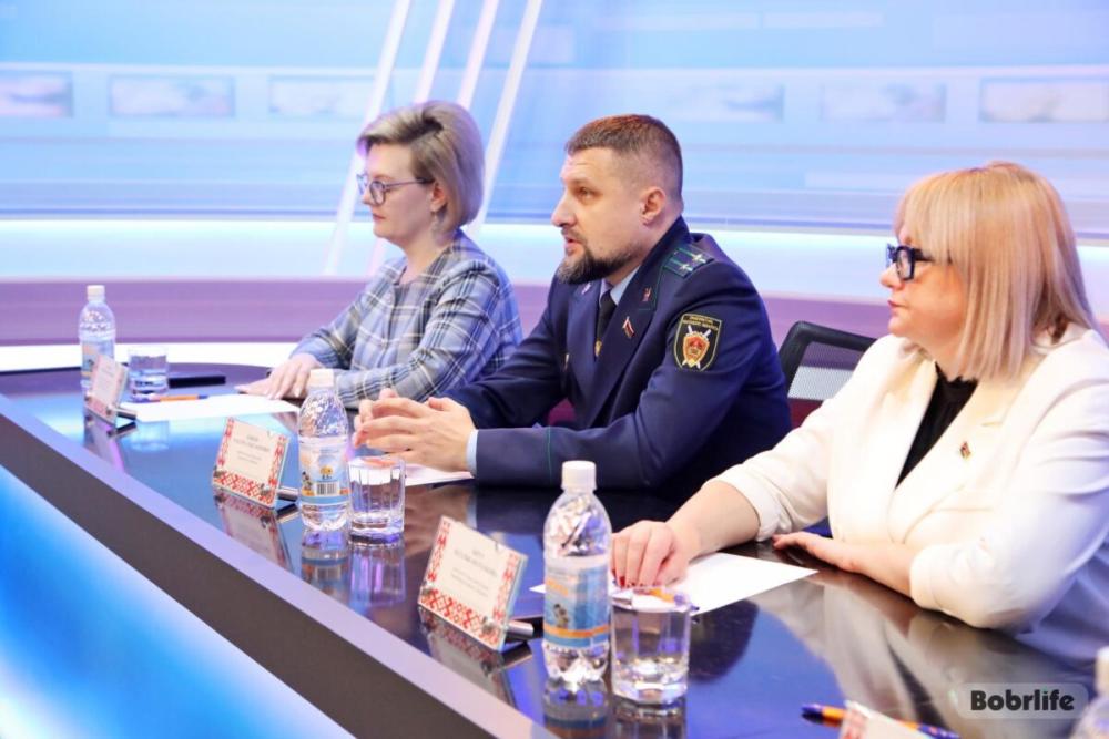 На встрече присутствовали заместитель главы администрации Ленинского района Инна Новикова, заместитель главы администрации Первомайского района Наталья Окрут, начальник отдела идеологической работы и по делам молодежи Бобруйского горисполкома Варвара Галеева, старший помощник прокурора г. Бобруйска Максим Бобков.