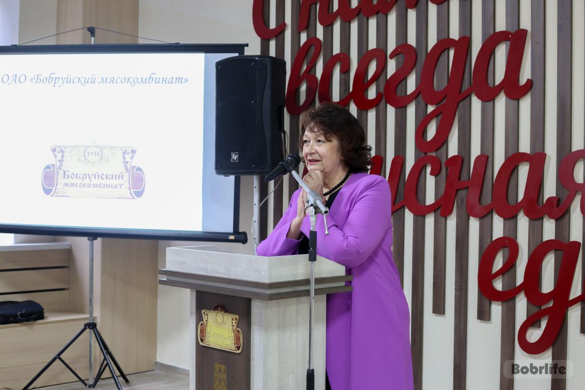 К гостям обратилась директор Татьяна Савченко. Татьяна Михайловна рассказала о работе предприятия, акцентировав внимание на строительстве нового цеха полуфабрикатов, который позволит расширить ассортимент продукции и укрепить свои позиции на рынке.