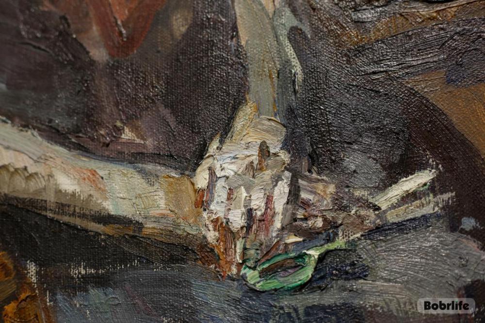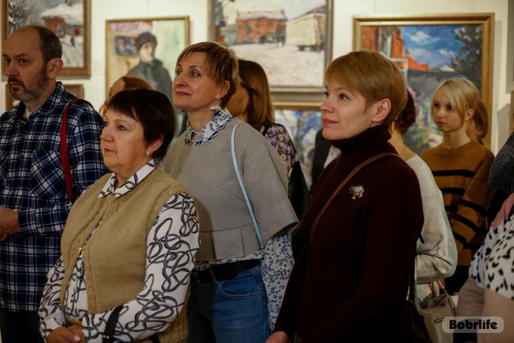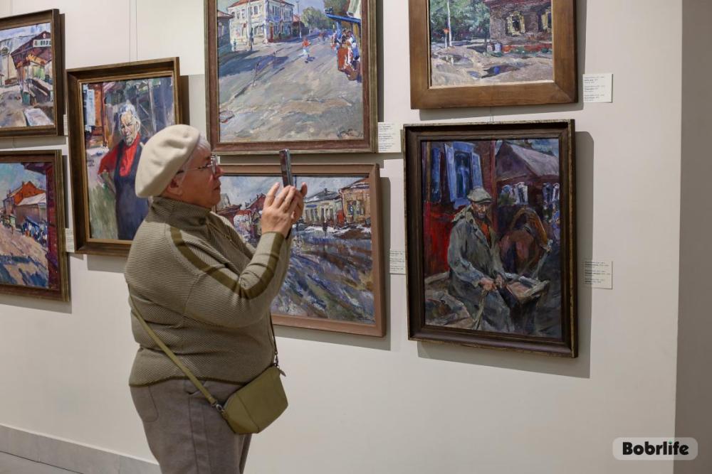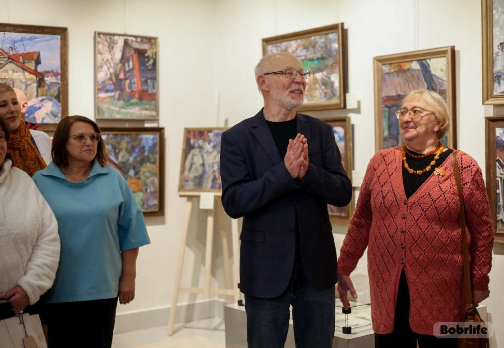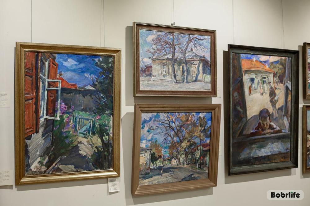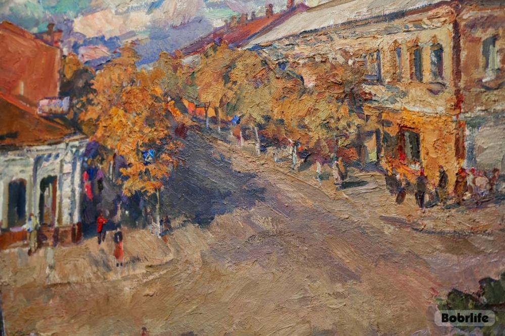 Особое место, конечно, занимают полотна с изображением Бобруйска. На них оживают знакомые улочки, старинные дворы, лирические силуэты зданий. Эти картины пронизаны теплотой и нежностью, они передают не просто архитектуру, а атмосферу и дух города, которые художник носил в сердце. Это диалог художника с малой родиной, который теперь может вести и каждый посетитель.