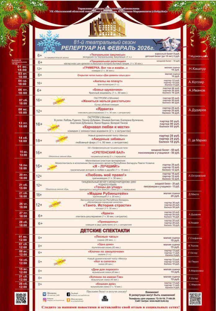 Экскурсия, «Две дюжины алых роз», Сретенский бал и, конечно, спектакли. Что предлагает театр Бобруйска в феврале