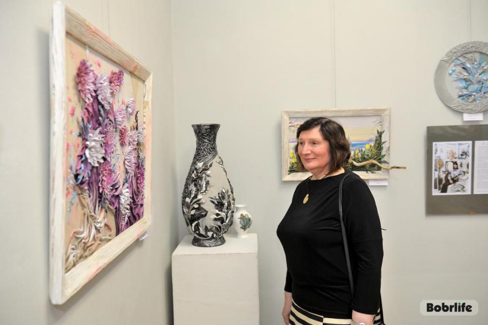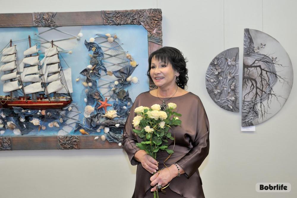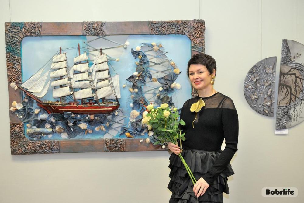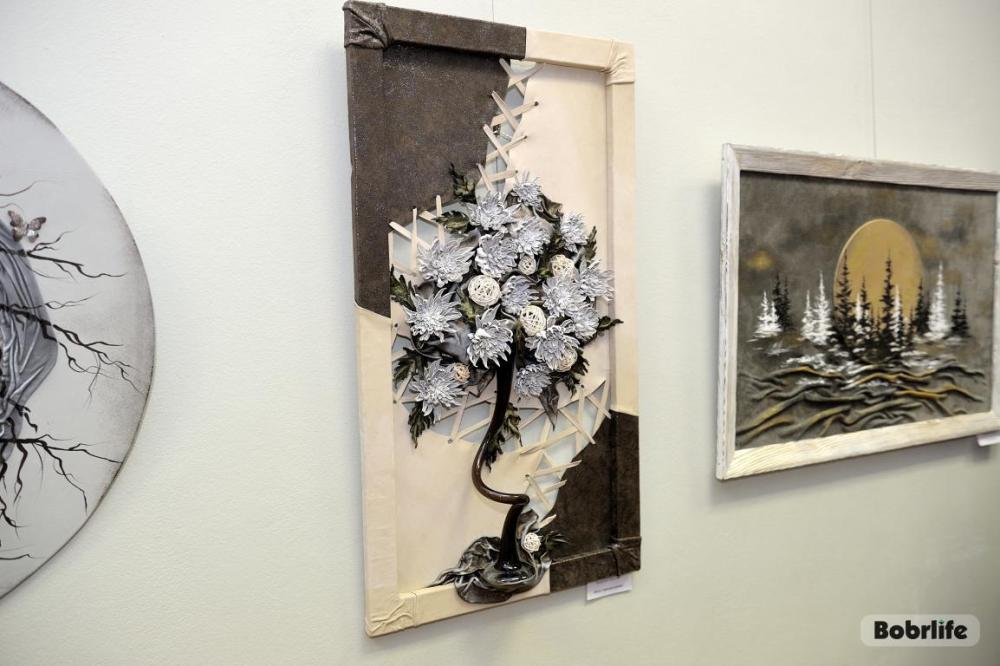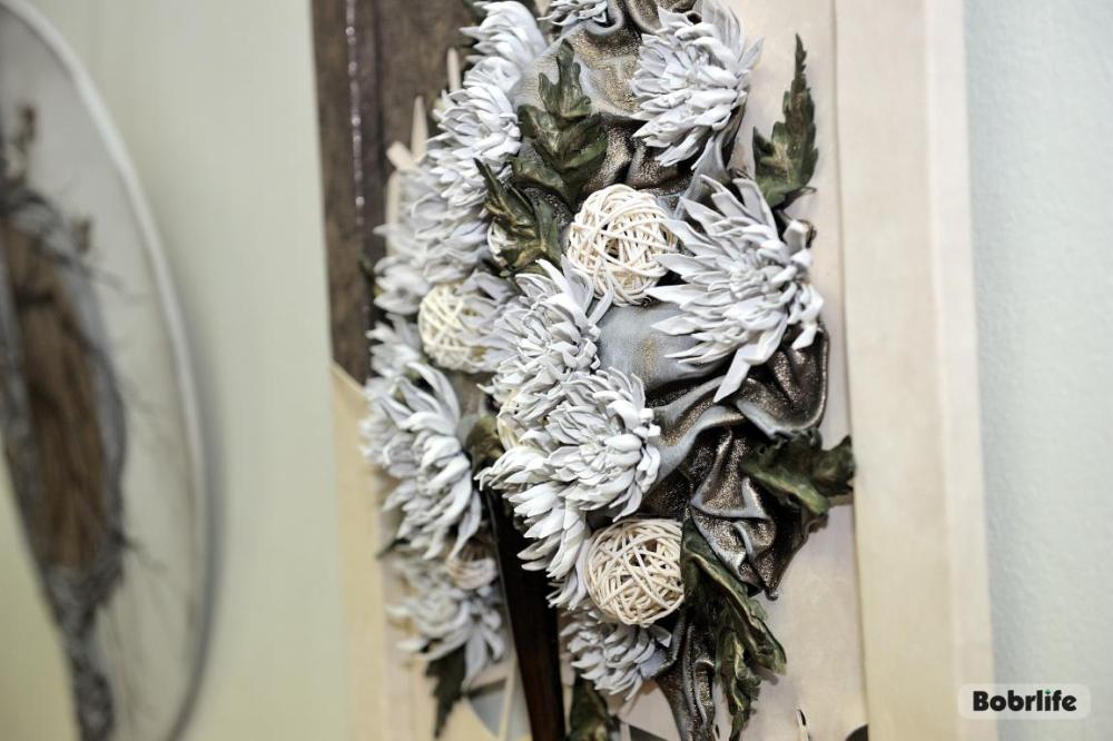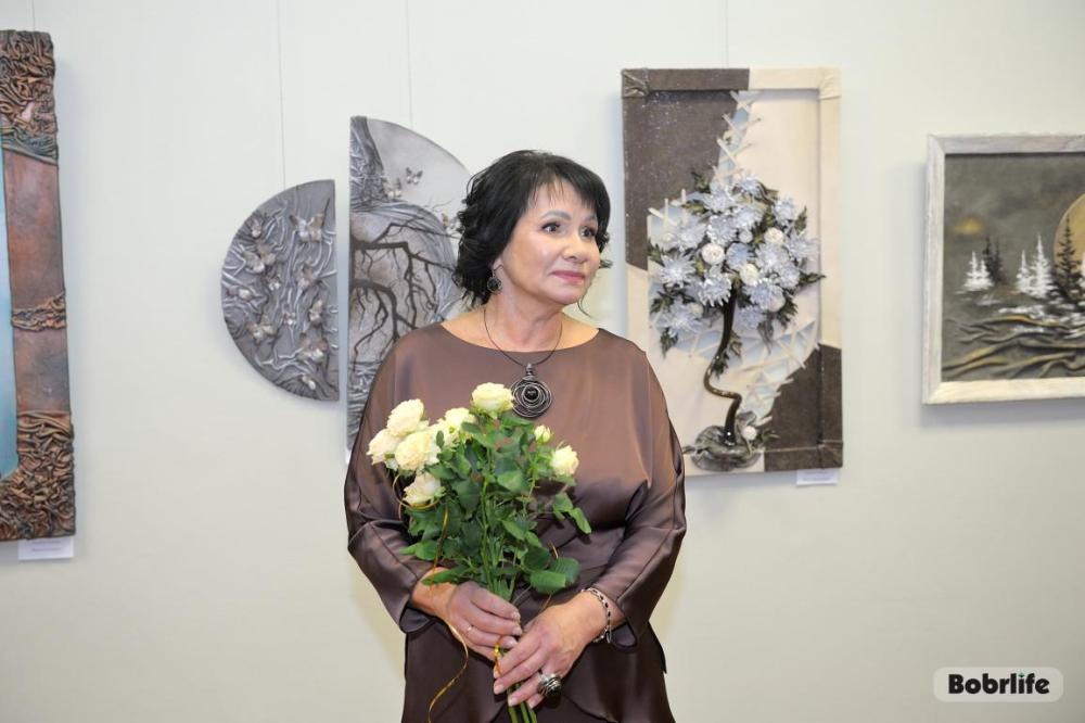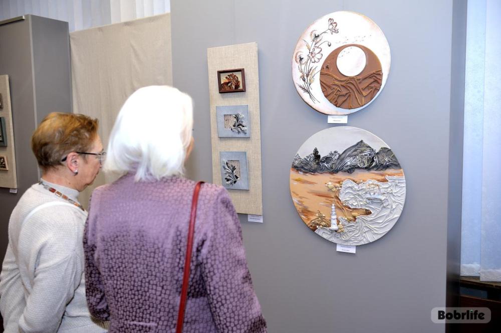 На открытии первой персональной выставки Наталия Борисовна рассказала, что впервые вошла в мир кожаного искусства 25 лет назад и научилась работать с большой любовью и уважением к пластичному материалу: «С помощью огня, воды и клея кожа превращается в удивительно красивые вещи. И мне это было очень интересно, начала учиться и совершенствоваться в этой технике, чтобы работы были еще лучше. Занимаюсь творчеством только в хорошем настроении. Увлечение радует и помогает жить. Хочется, чтобы и зрителям мои работы понравились, принесли радость и передали частичку моей души».