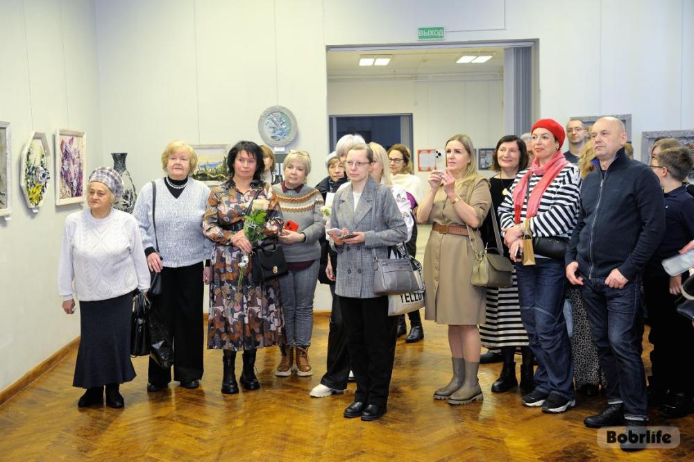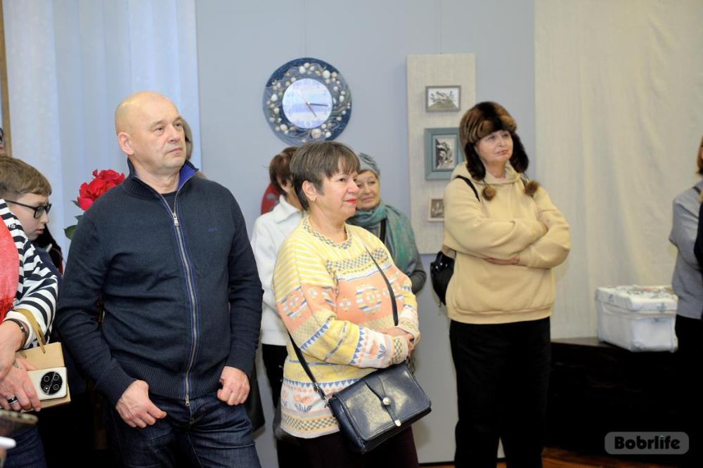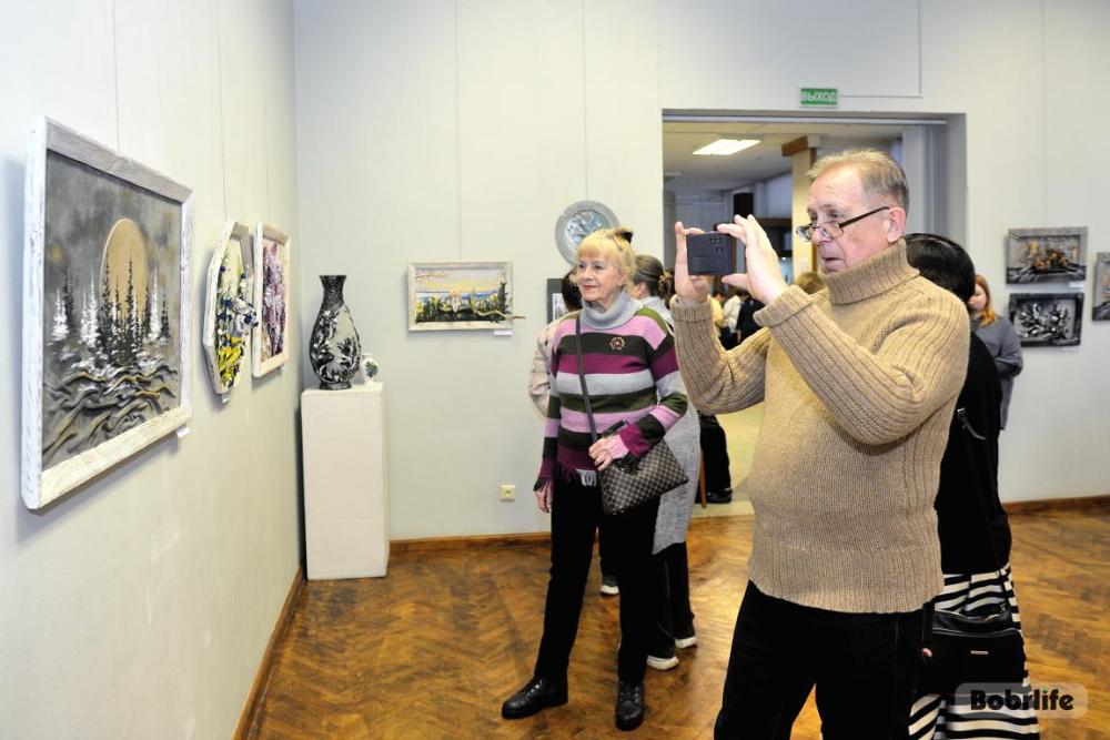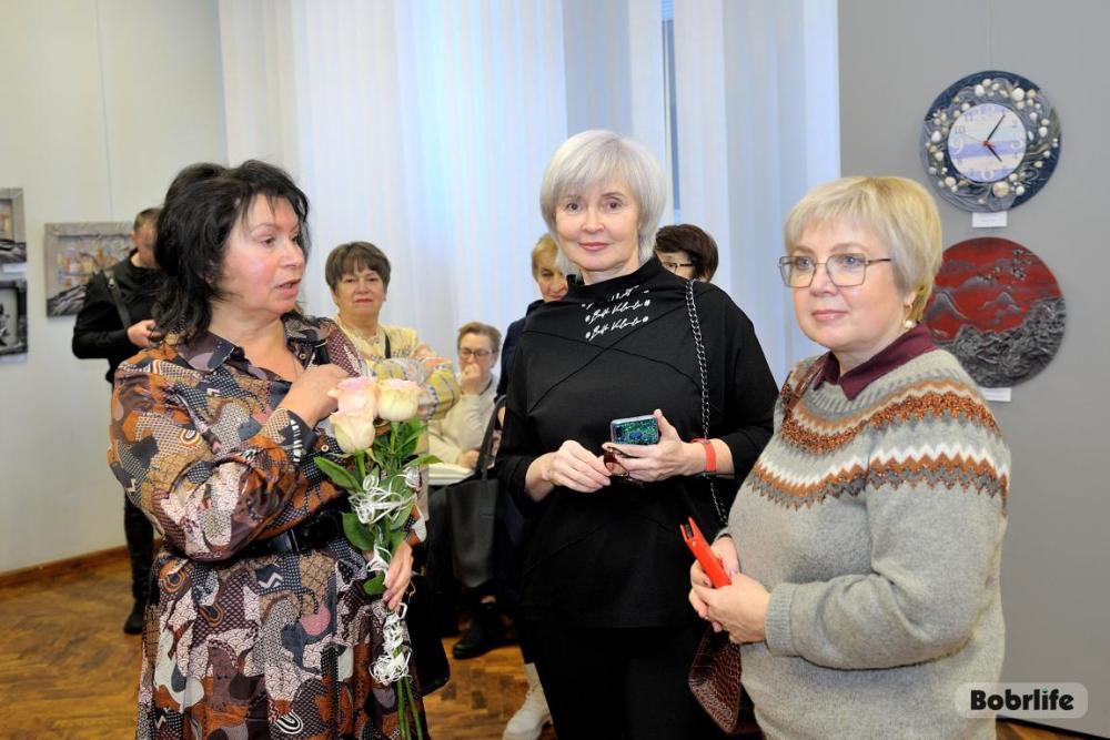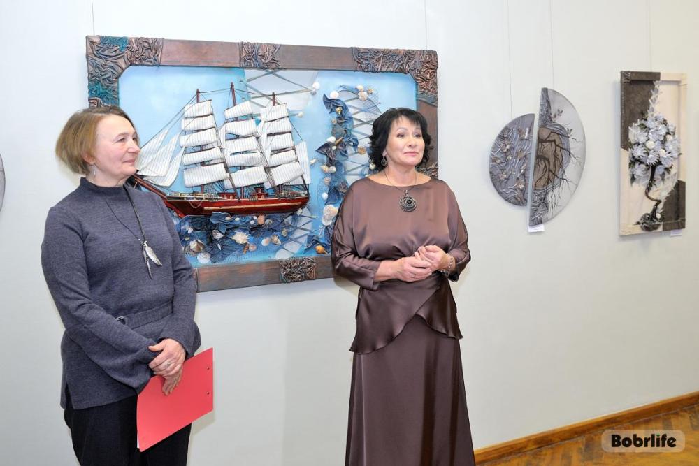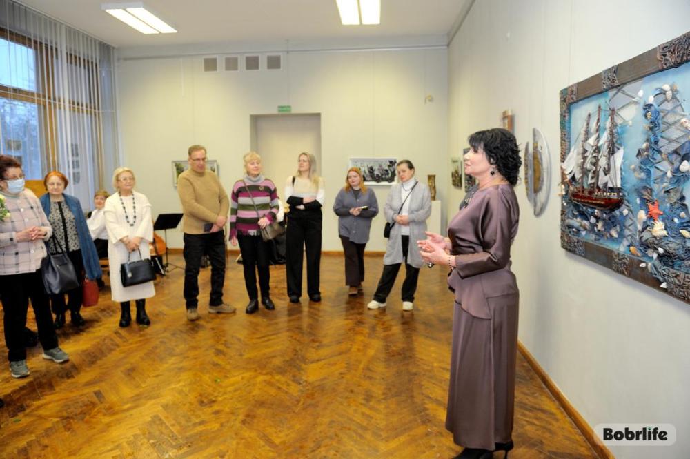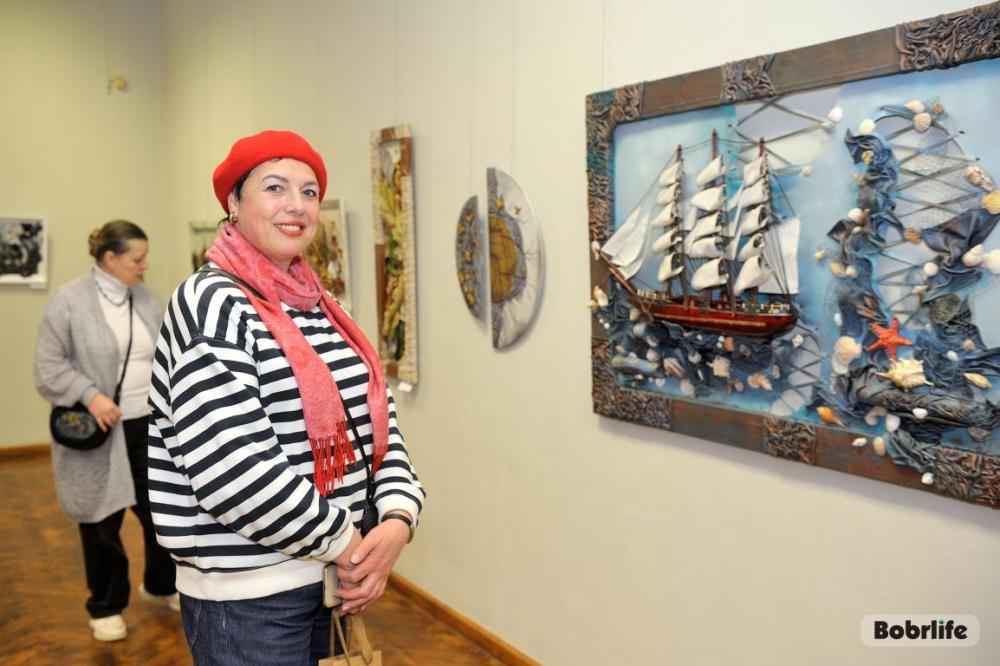 На открытии первой персональной выставки Наталия Борисовна рассказала, что впервые вошла в мир кожаного искусства 25 лет назад и научилась работать с большой любовью и уважением к пластичному материалу: «С помощью огня, воды и клея кожа превращается в удивительно красивые вещи. И мне это было очень интересно, начала учиться и совершенствоваться в этой технике, чтобы работы были еще лучше. Занимаюсь творчеством только в хорошем настроении. Увлечение радует и помогает жить. Хочется, чтобы и зрителям мои работы понравились, принесли радость и передали частичку моей души».