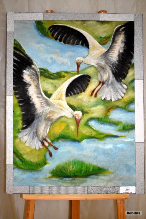 Экспозиция начинается со своеобразной автобиографии в красках. Маслом на холсте запечатлены места, где прошли детство и юность: Беловежская пуща, Кубань, Калининград, Гомельщина... Эта картина – словно живописный документ, отражающий ключевые вехи судьбы. Переходя от работы к работе, зритель замечает лейтмотивы творчества: красота родной природы и казачья тематика, перекликающаяся с репертуаром «Вольницы». С любовью на полотнах изображены аисты, распахнувшие крылья над просторами; вишня в белопенном цветении; храм Святого Ильи на Луковой горе, написанный с особой теплотой. Рядом на полотне старый дуб, на вершине которого идет своим чередом новая жизнь в гнезде с аистятами. В этих философских сюжетах размышления о вечности и преемственности бытия.