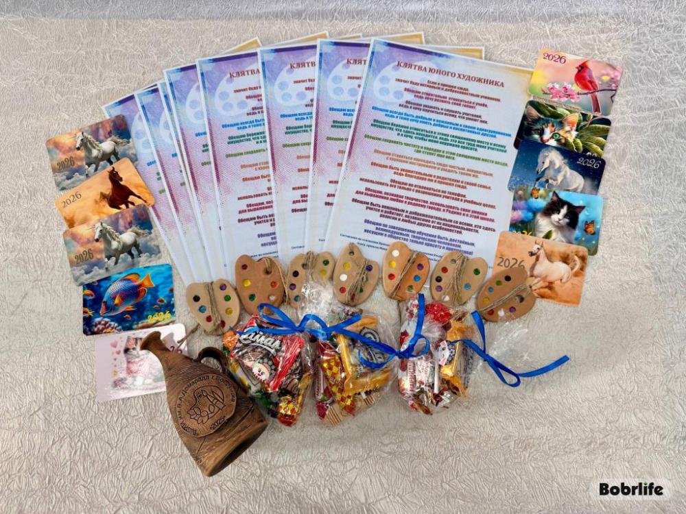Волнительный момент – торжественная клятва юных художников. Ребята искренне обещали быть активными и добросовестными, развивать талант и использовать свои умения для выражения любви к нашему городу и Родине, быть творческими людьми, несущим в общество только красоту и прекрасное. Первоклассники получили символ посвящения – декоративные палитры, изготовленные руками старших учащихся школы, и как приятное дополнение – сладкие подарки. Теперь юные художники стали полноправными хранителями законов живописи и керамики.