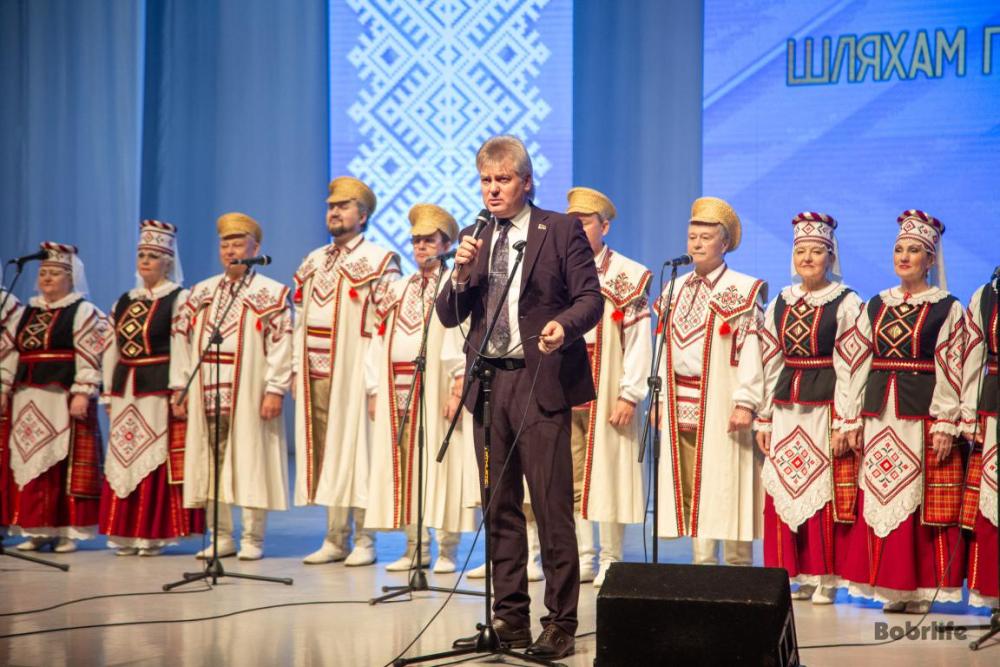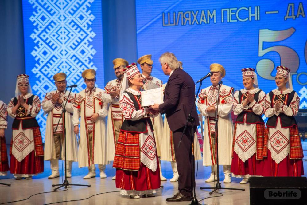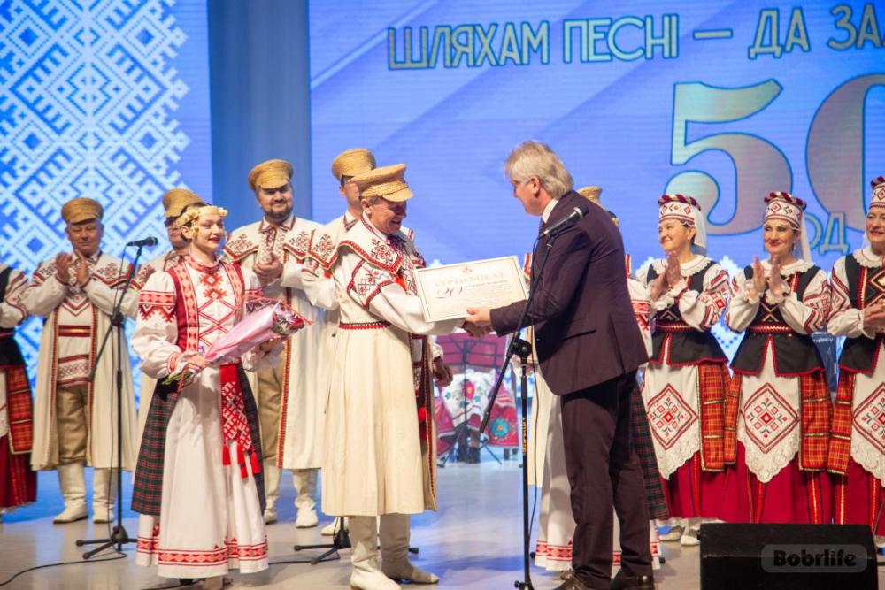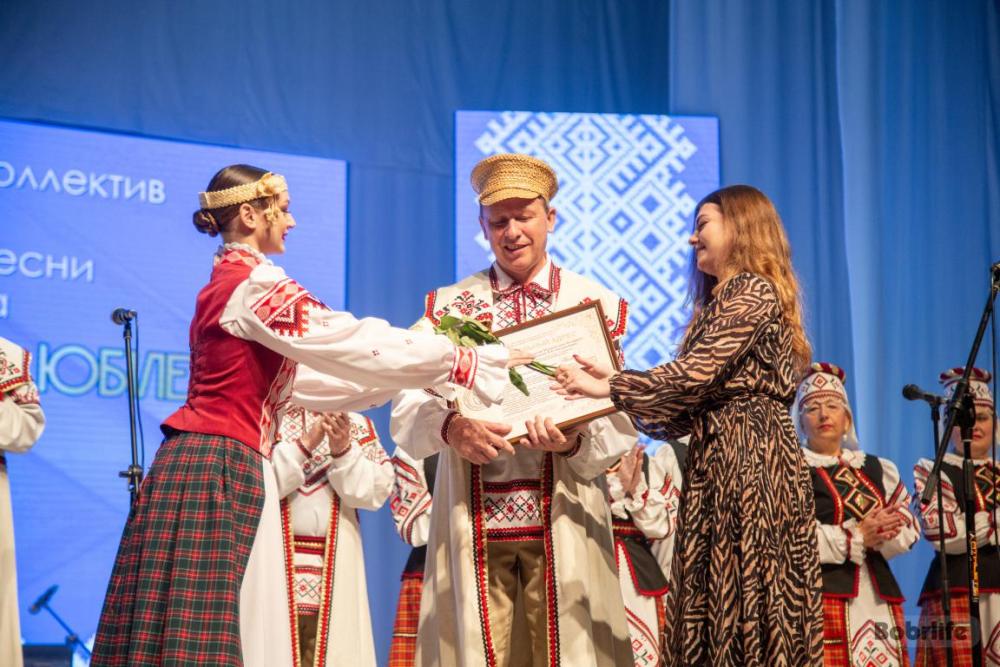 – Сегодня народная песня – это душа, сердце белорусов. Я искренне горд, что в Бобруйске есть такой замечательный коллектив, который является визитной карточкой Могилевской области и известен не только в стране, но и далеко за ее пределами. Приятно наблюдать, как живет, процветает и развивается дело жизни Виктора Евстафьевича. Я желаю вам творческих успехов, новых побед и достижений, чтобы энергия народной песни никогда не иссякала, – поздравил коллектив Вадим Щербич, начальник отдела культуры Бобруйского горисполкома.