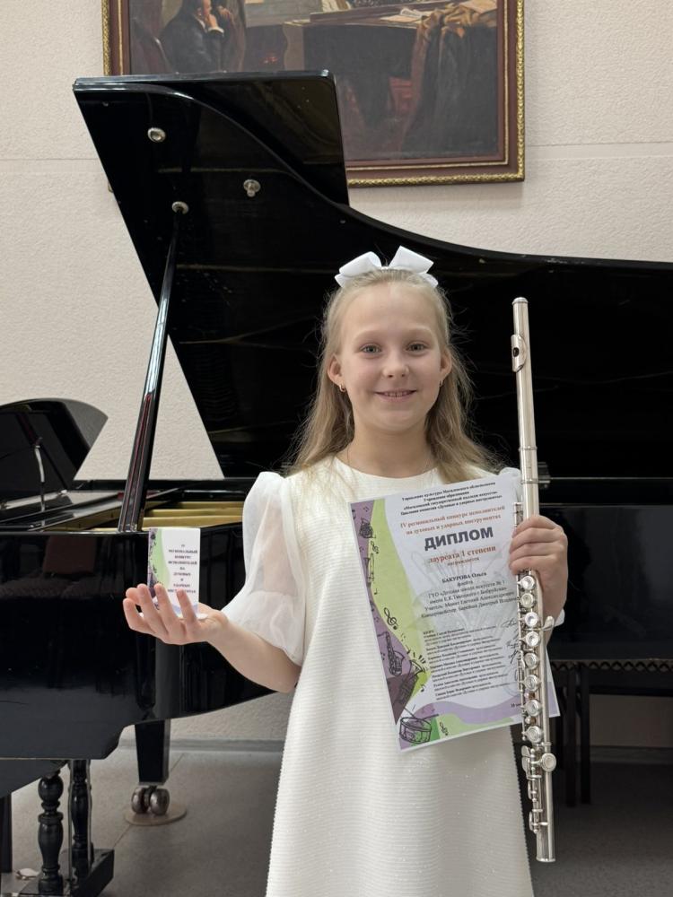 Лауреат I степени – Ольга Бакурова (флейта, учитель – Е.А. Монит, концертмейстер – Д.В. Барейша).
