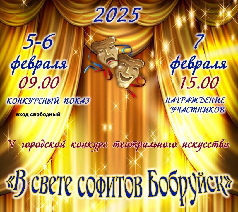 Во Дворце искусств пройдет V городской конкурс театрального искусства «В свете софитов Бобруйск», посвященный 80-летию Победы советского народа в Великой Отечественной войне.