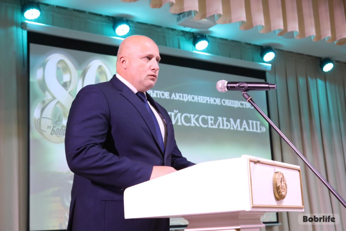 «Бобруйсксельмаш» отметил 80-летний юбилей. На празднике присутствовали председатель Бобруйского горисполкома Максим Гурин, заместитель министра промышленности Республики Беларусь Денис Бакей, председатель Бобруйского горсовета депутатов Ирина Рынейская, глава администрации Первомайского района Виталий Власевич, генеральный директор открытого акционерного общества «УКХ «Бобруйскагромаш» Олег Корсак.