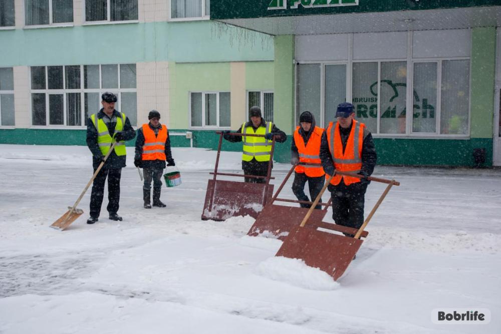 – Бобруйскагромаш, взаимодействуя с администрацией Первомайского района, на регулярной основе проводит санитарные дни. Осенью мы убирали опавшую листву, а сегодня очищаем проходную от снега. Трудимся с заботой о сотрудниках, ведь каждому хочется приходить на работу с удовольствием, – рассказал главный инженер ОАО «УКХ «Бобруйскагромаш» Сергей Лазакович.