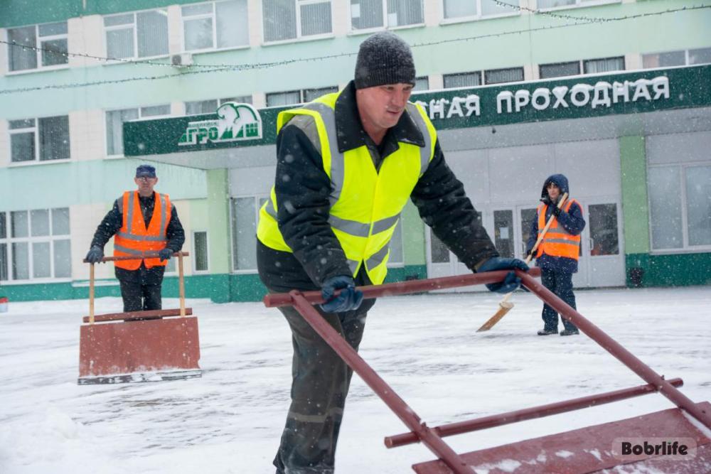 Вооружившись лопатами, реагентами и заручившись поддержкой снегоуборочной техники, работники привели в порядок центральные проходные предприятий. Энтузиазм и желание сделать добро – главные мотиваторы сегодняшнего дня.
