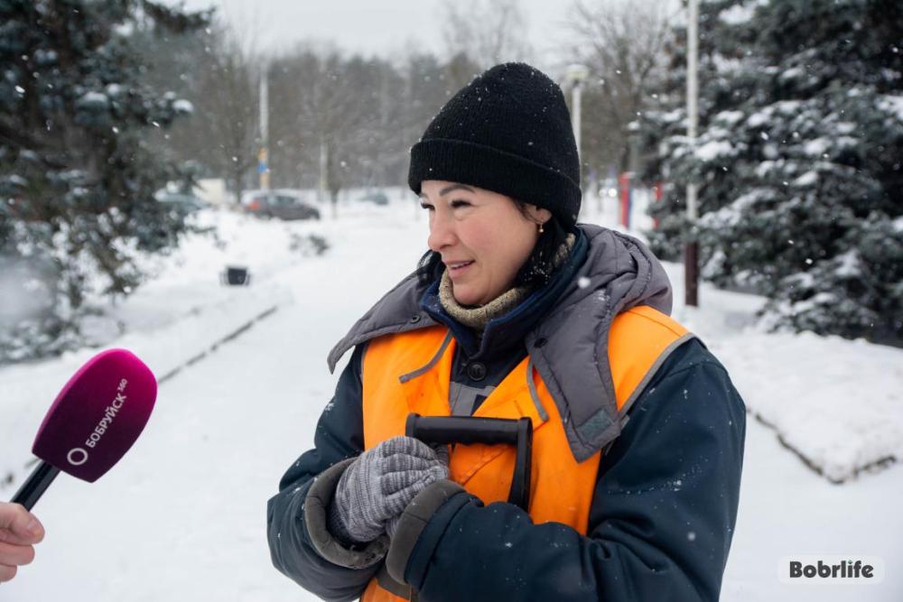 – Несмотря на погоду, город продолжает жить. Ходит транспорт, работают предприятия, мы в том числе. Хозяйственный цех делает все возможное, чтобы облегчить работу коммунальных служб и помочь городу в противодействии зиме, – отметила рабочий зеленого строительства ОАО «Белшина» Наталья Сидоренко.