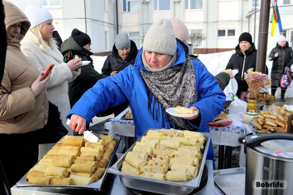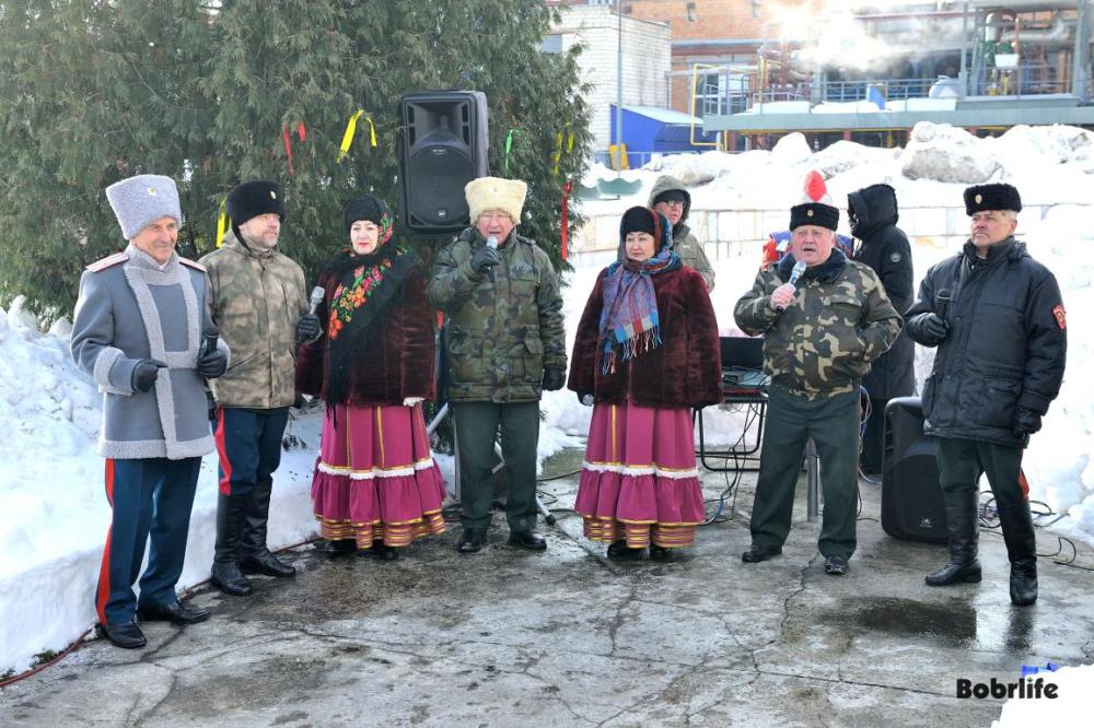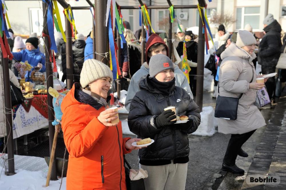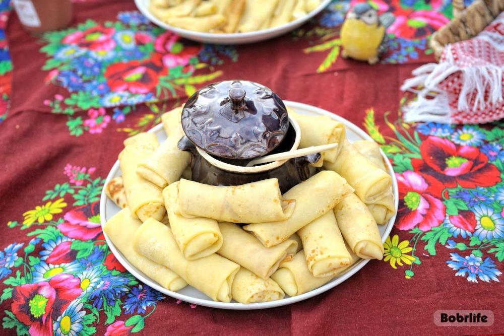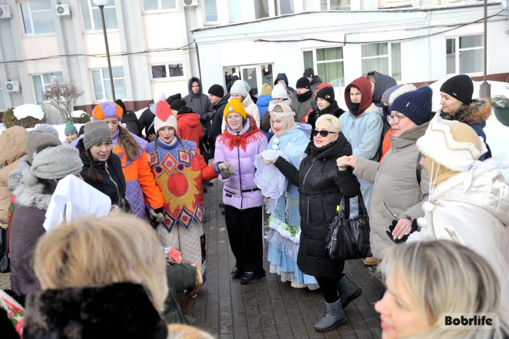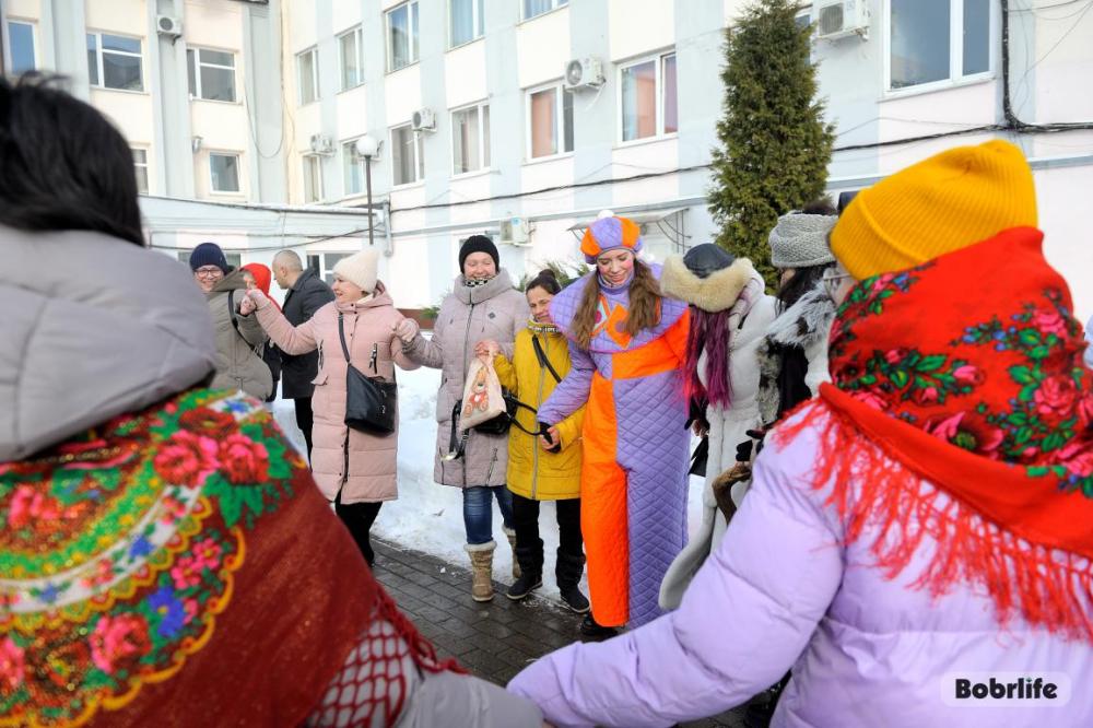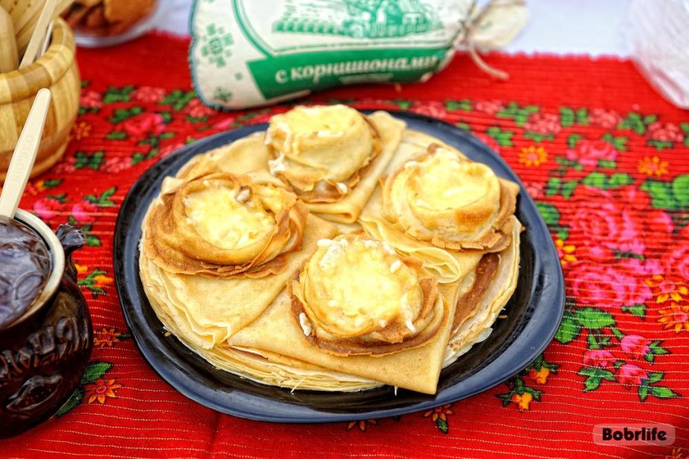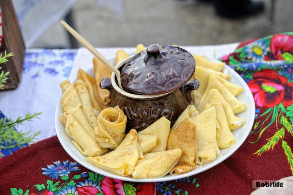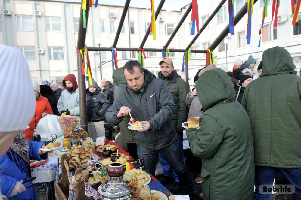 Гостей встречала площадка, украшенная в традиционном народном стиле – с рушниками, лентами и куклами. Внутри нее стояли столы с разнообразными свежими масленичными угощениями, в приготовлении которых использовалась продукция предприятия. Коллектив пригласили попробовать румяные, золотистые блины с ливером, маслом, сметаной, ветчиной и сыром, оладьи с медом, булочки, печенье. К лакомствам подавали горячий чай и согревающий настой из шиповника.