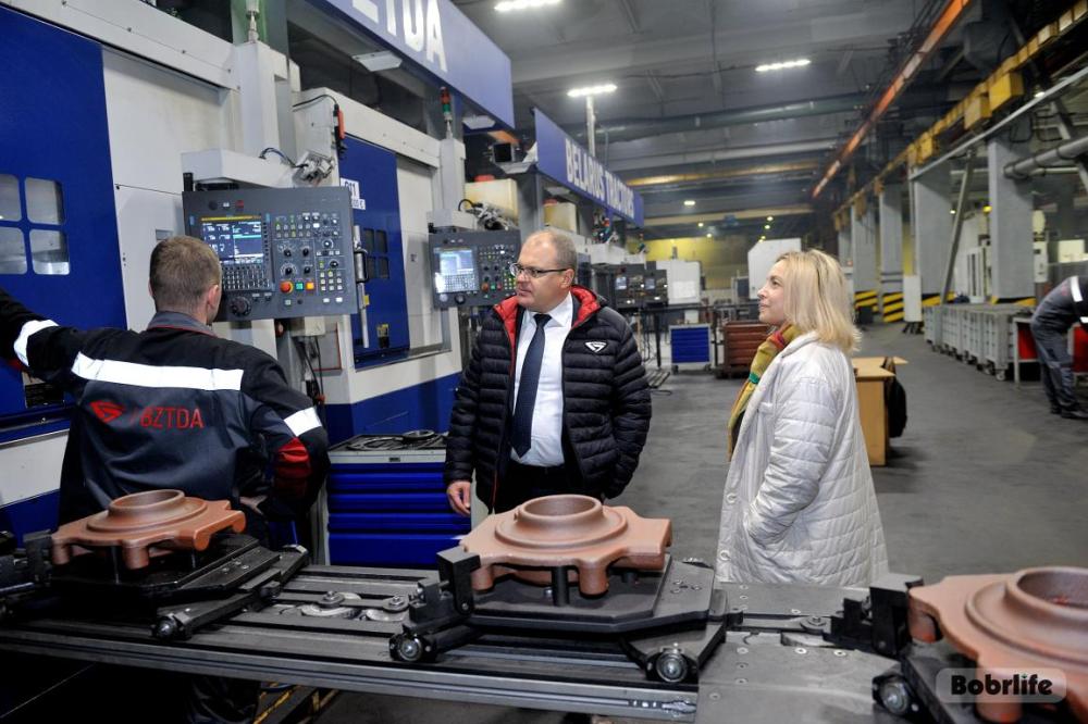 После этого Елена Владимировна посетила ОАО «БЗТДиА», где ознакомилась с современным производством. В ходе визита руководство завода провело подробную экскурсию по производственным цехам. Заместитель председателя облисполкома лично ознакомилась с технологическим процессом изготовления тракторных деталей и агрегатов, оценила уровень автоматизации производства и внедрение современных технологий. Особое внимание было уделено качеству выпускаемой продукции, ее конкурентоспособности на рынке и экспортному потенциалу предприятия. Заместитель председателя облисполкома подчеркнула, что приоритетом является создание благоприятных условий для развития предприятий, привлечение инвестиций и обеспечение устойчивого экономического роста в регионе.