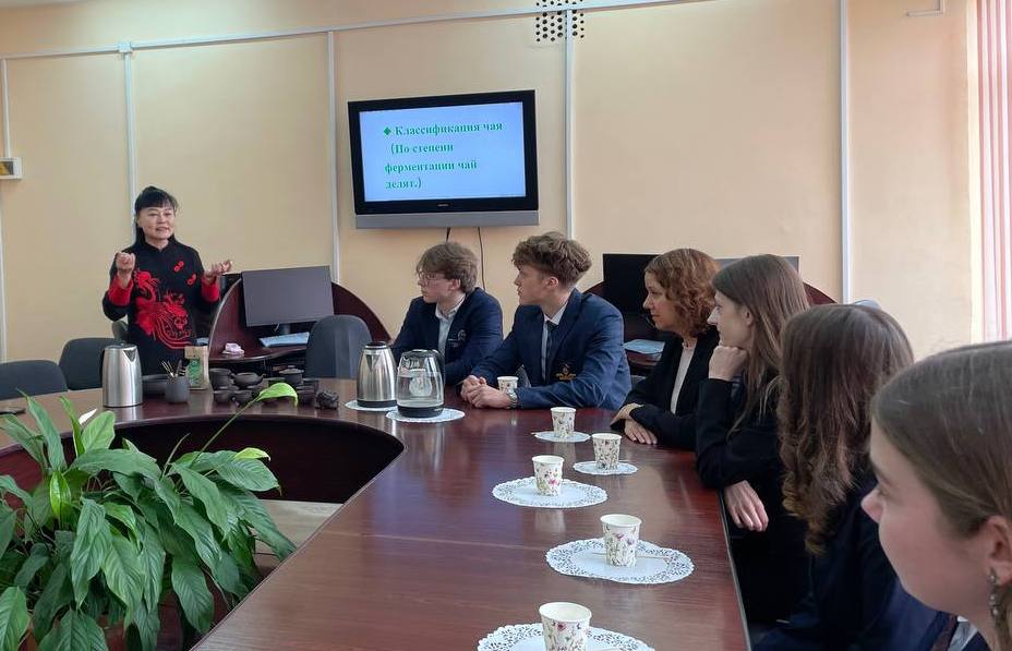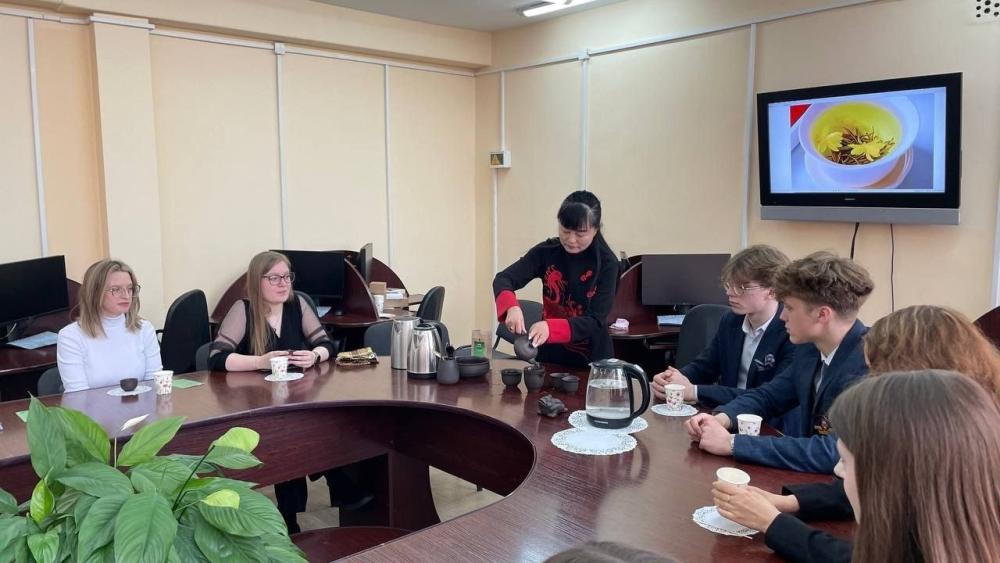 В завершение встречи Ван Сяомэй познакомила присутствующих с традицией проведения чайной церемонии, а Лилия Зайцева провела для учащихся гимназии мастер-класс по изготовлению элементов китайской культуры.