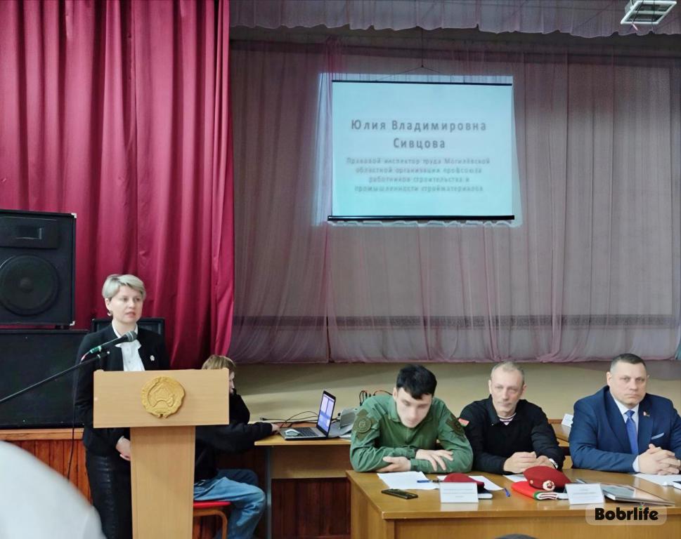 Военно-патриотическое воспитание и трудовая деятельность молодежи в современных условиях. Диалоговая площадка под таким названием, организованная Могилевской областной организацией Белорусского профсоюза работников строительства, прошла 25 февраля в Бобруйском государственном индустриально-строительном колледже.