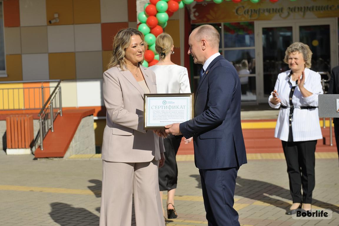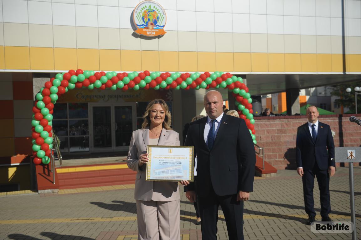 В значимый день почетные гости вручили директору школы Ирине Матузовой сертификаты на приобретение интерактивной панели и многофункционального устройства, которые будут помогать в учебном процессе.