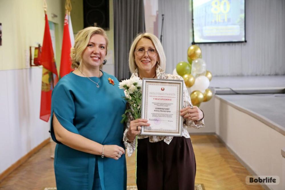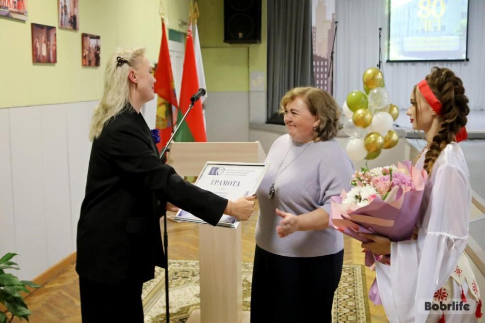 - В июне 1945 года в Бобруйске был открыт учебно-производственный комбинат по обучению сирот и инвалидов Великой Отечественной войны. А в 1966 году он был переименован в профессионально-техническое училище №73 бытового обслуживания населения. 80 лет – это не просто красивая дата, это живая история, которую писали поколения педагогов. Особые слова благодарности сегодня хочу сказать нашим дорогим ветеранам педагогического труда – тем, кто стоял у истоков и закладывал те прочные традиции, которые мы храним до сих пор. Ваши мудрость, самоотверженный труд — это тот фундамент, на котором мы крепко стоим сегодня. Вы — не просто наша история, вы — ее живая душа. Низкий вам поклон. Дорогие коллеги, наша сегодняшняя команда — это достойные преемники тех, кто начинал этот путь. Ежедневно ваш профессионализм, энергия, искренняя любовь к учащимся творят чудеса. Вы не просто передаете знания, вы воспитываете личности, учите мыслить, находить решения, быть конкурентоспособными специалистами. Спасибо вам за ваш труд, терпение, творческий подход и инновации, которые вы смело внедряете в образовательный процесс. Мы воспитали уже не одно поколение профессионалов, которые прославляют своими трудовыми победами и наш колледж, и город, и страну. 80 лет — это солидный возраст. Это время мудрости, основанной на опыте, и энергии, направленной на будущее. Мы не останавливаемся на достигнутом. Впереди новые цели, вызовы и победы. Мы и дальше будем внедрять образовательные стандарты, развивать материально-техническую базу, прославлять наш коллектив. С юбилеем, любимый колледж! – отметила директор учебного заведения Екатерина Евстратчик.